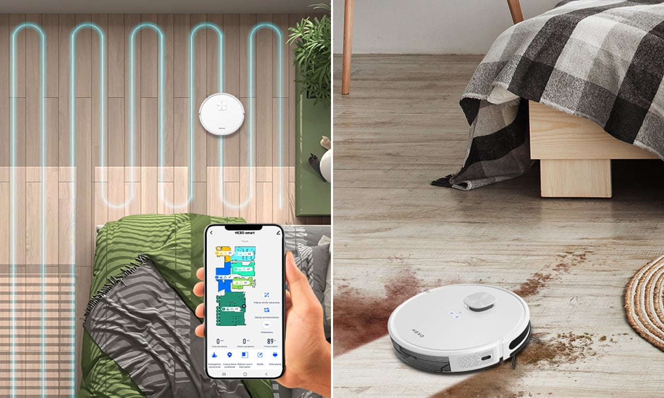 Чиста підлога з Hexo SmartHexo Smart - це робот-прибиральник з функцією миття підлоги. Він ефективніше видаляє засохлі плями, проходячи по них кілька разів під різними кутами. Він також може одночасно пилососити та мити підлогу, що дозволяє йому виконувати роботу швидко та ретельно. Кількість води, що використовується під час миття, регулюється електронікою, тому він адаптує її до типу поверхні, що прибирається.