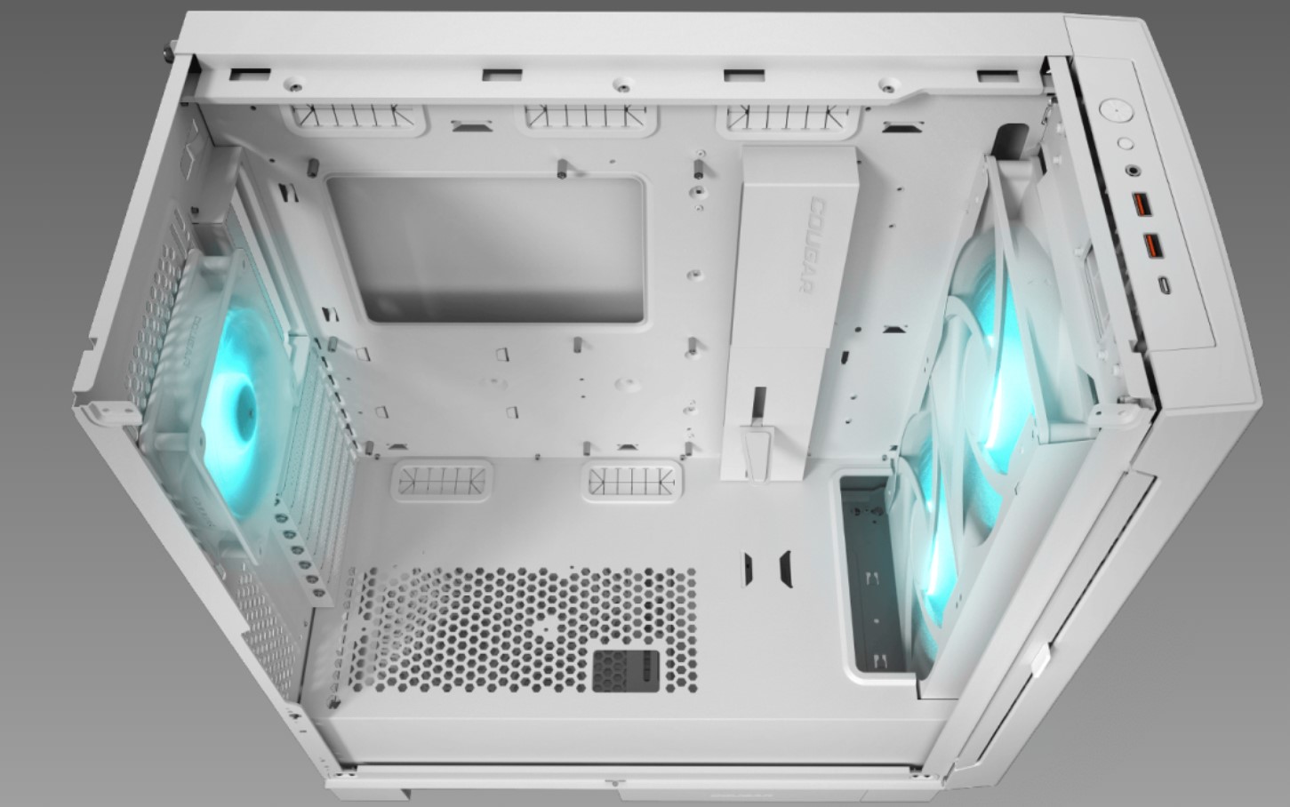 Два потужні 180-мм PWM-вентилятори спереду охолоджують вашу систему при високих навантаженнях. Ці вентилятори попередньо встановлені для забезпечення оптимального повітряного потоку прямо з коробки зі швидкістю, яка модулюється відповідно до потреб вашої системи. Airface ECO RGB також постачається із попередньо встановленим 120-мм заднім витяжним вентилятором.
