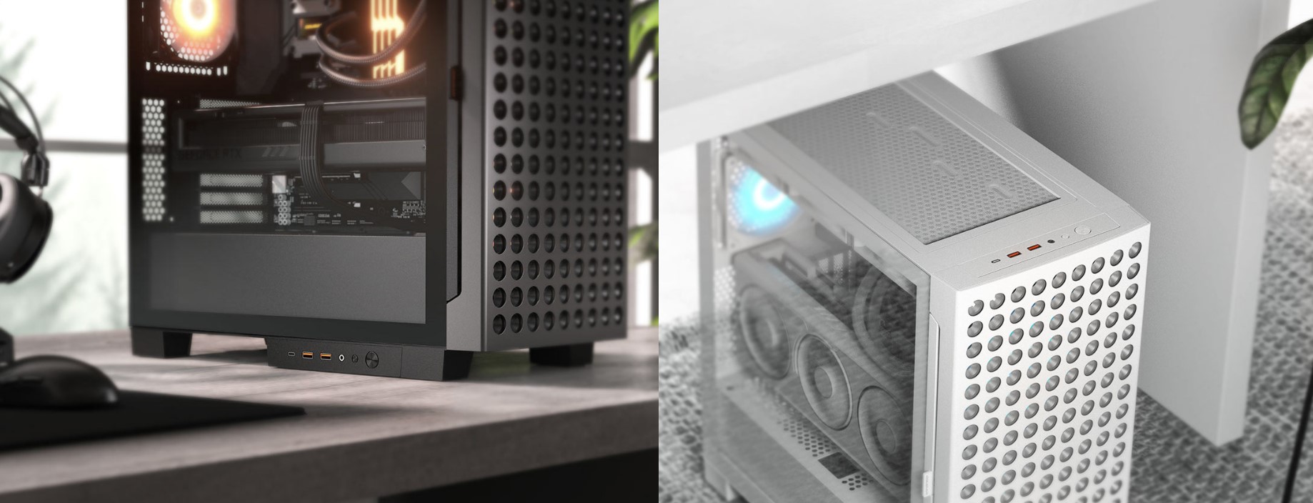 Незалежно від того, віддаєте перевагу портам і кнопкам зверху або знизу, ця функція дозволяє вам розташувати їх там, де вам буде найзручніше. Така адаптивність гарантує, що всі ваші з'єднання будуть доступними, незалежно від того, як ви розташуєте корпус. Панель входів/виходів Airface ECO RGB включає 2 порти USB-C 3.2 Gen 2, 1 порт USB-A 3.0, 4-контактний роз'єм для навушників, кнопку RGB.