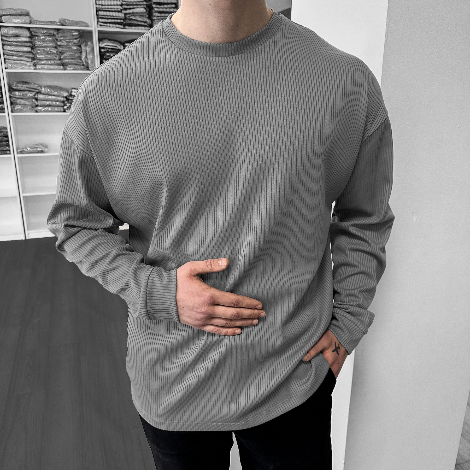 Кофта Сіра Для Чоловіків В Рубчик Оверсайз Графіт Sellia