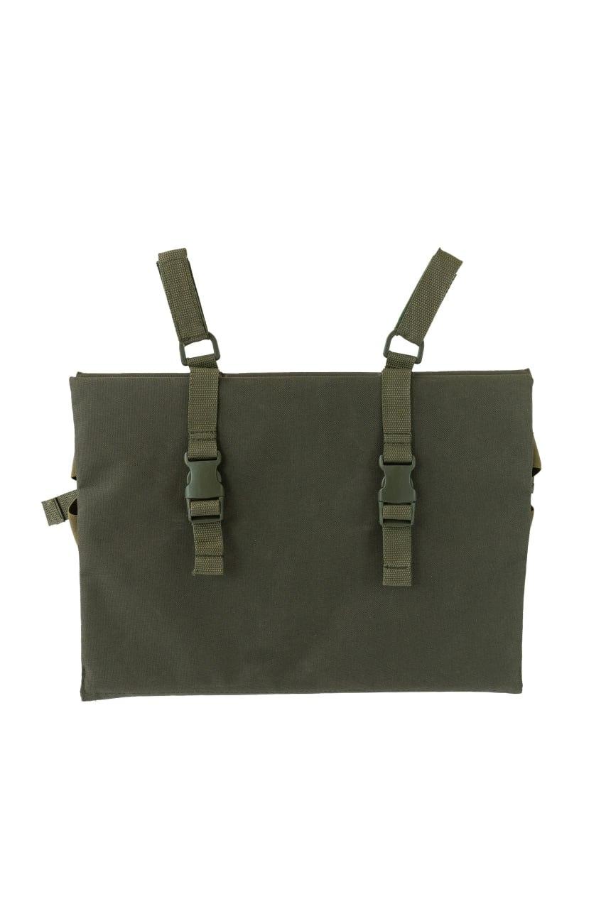 Для фіксації на системі MOLLE та поясних ременях передбачені стропи з липучкою велкро. Складається та фіксується каремат за допомогою вшитих липучок.