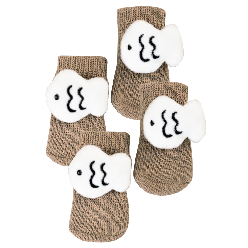 ✿✳Шкарпетки для собак Lesko з неслизькими накладками зігрівальні для вихованців M бежеві захисні для лапок CI-88