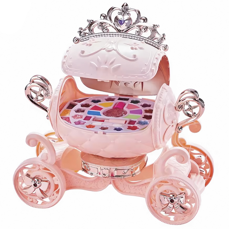 Запрошуємо вас до чарівного світу дитячої краси з набором декоративної косметики у вигляді карети. Створений спеціально для маленьких принцес цей набір поєднує в собі розвагу, розвиток творчих навичок і безпечне використання. Всі засоби для нанесення косметики зручно розташовані в карете-органайзері, що дозволяє підтримувати порядок та легко знаходити потрібний продукт. Кейс органайзер забезпечує компактність і зручність зберігання. Всі косметичні засоби розроблені спеціально для дітей, що гарантує їх безпеку і ніжний догляд за дитячою шкірою. У комплект входить дзеркало, що дозволяє маленьким модницям бачити результат своїх старань і насолоджуватися процесом створення власного образу Уявіть собі, як ваша маленька принцеса готується до дитячого свята або веселих ігор з друзями. Вона відкриває свою чарівну карету, де зберігається її улюблена косметика. Світячи від захоплення, вона дістає помаду, блиски для губ і тіні для очей, ретельно підбираючи кольори та відтінки. Завдяки зручному дзеркалу вона може побачити свій неперевершений образ і відчути себе справжньою чарівницею. Після гри всі засоби акуратно повертаються на свої місця в кейс-органайзері, зберігаючи порядок та чистоту.