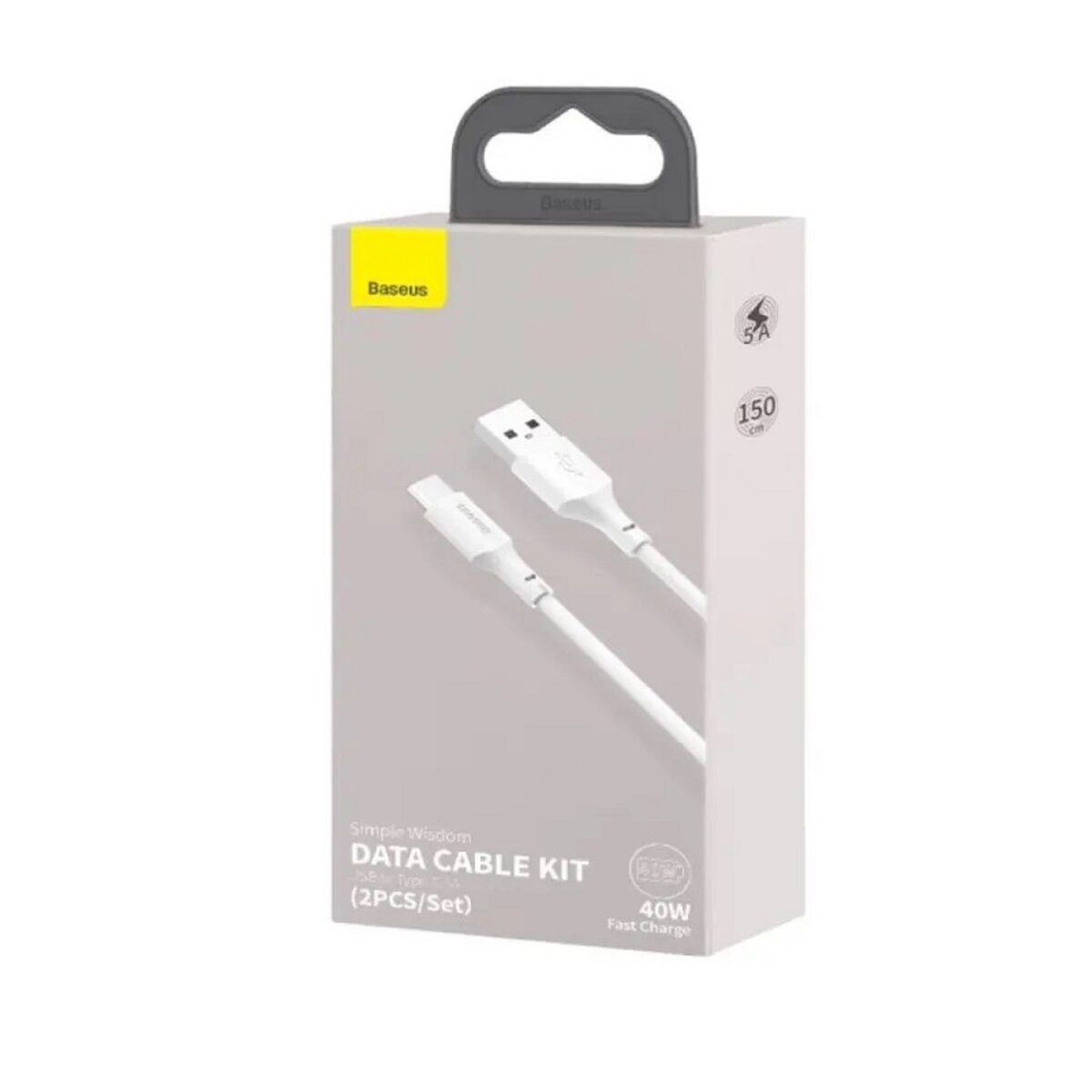 Кабель Baseus Simple Wisdom Data Cable Kit USB to Type-C 5A (2PCS/Set)1.5m WhiteBaseus Simple Wisdom Data Cable Kit USB to Type-C 5A (2PCS/Set) 1.5m White — набір із двох універсальних кабелів для швидкого заряджання й передачі даних, розроблених для пристроїв із роз’ємом Type-C. Завдяки підтримці зарядного струму до 5А ці кабелі ідеально підходять для заряджання сучасних смартфонів, планшетів та інших гаджетів.