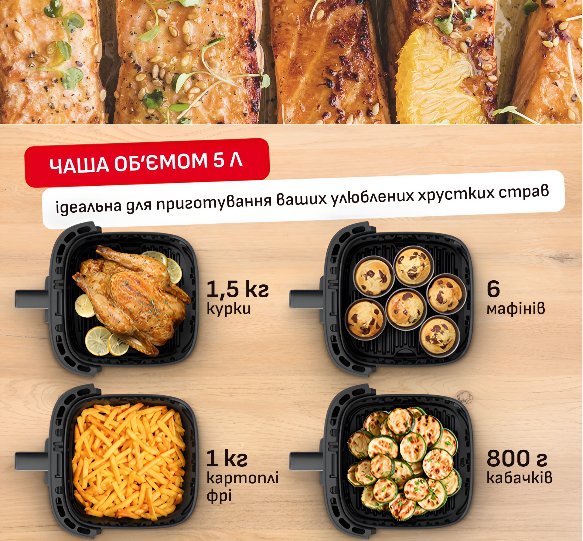 Автовідключення, Автоприготування, Регулювання температури, Система приготування без застосування масла, Таймер |