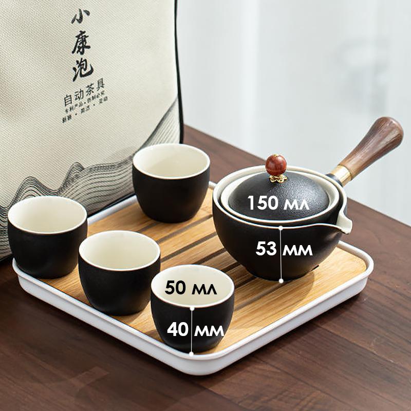 - Комплектація: Чайник, 4 піали, таця, чохол