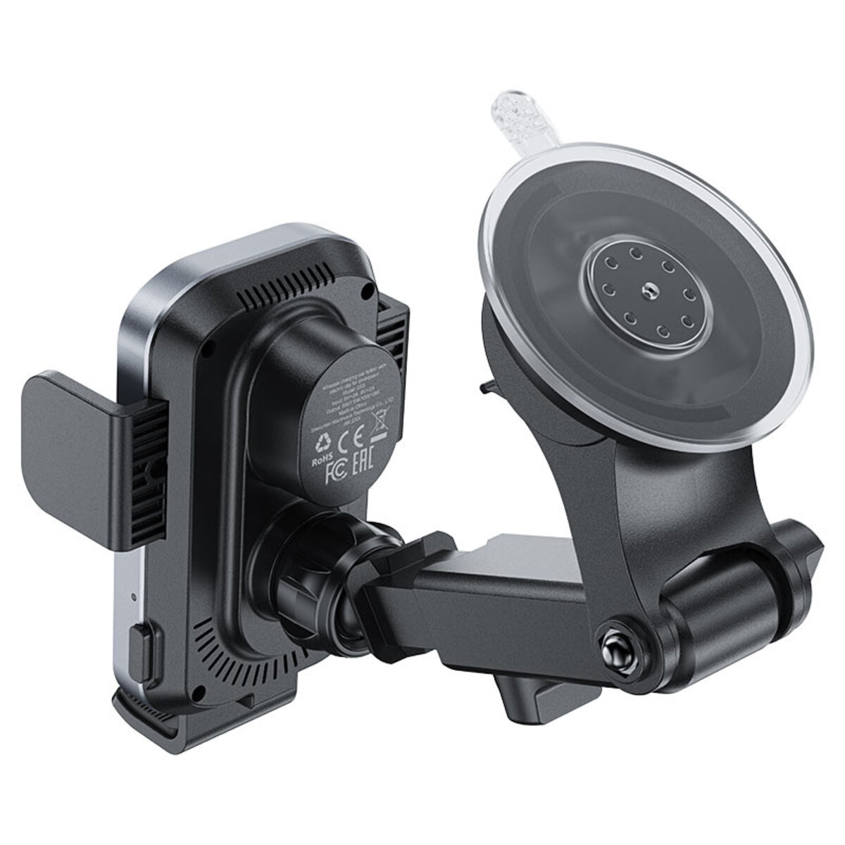 Електричний механізм автоматично фіксує смартфон, забезпечуючи зручність і надійність. Підтримує швидке заряджання до 15 W для смартфонів із технологією Qi.