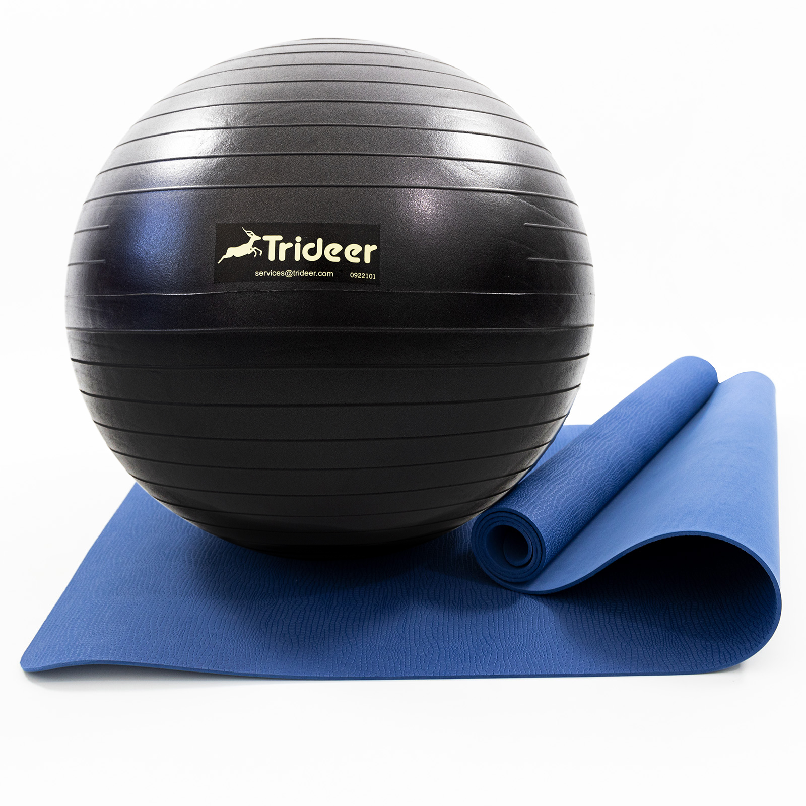 - Комплектація:М'яч для фітнесу (фітбол) сатин з насосом Trideer 65 см, Килимок для йоги та фітнесу EVA OSPORT Yoga Pro 3мм