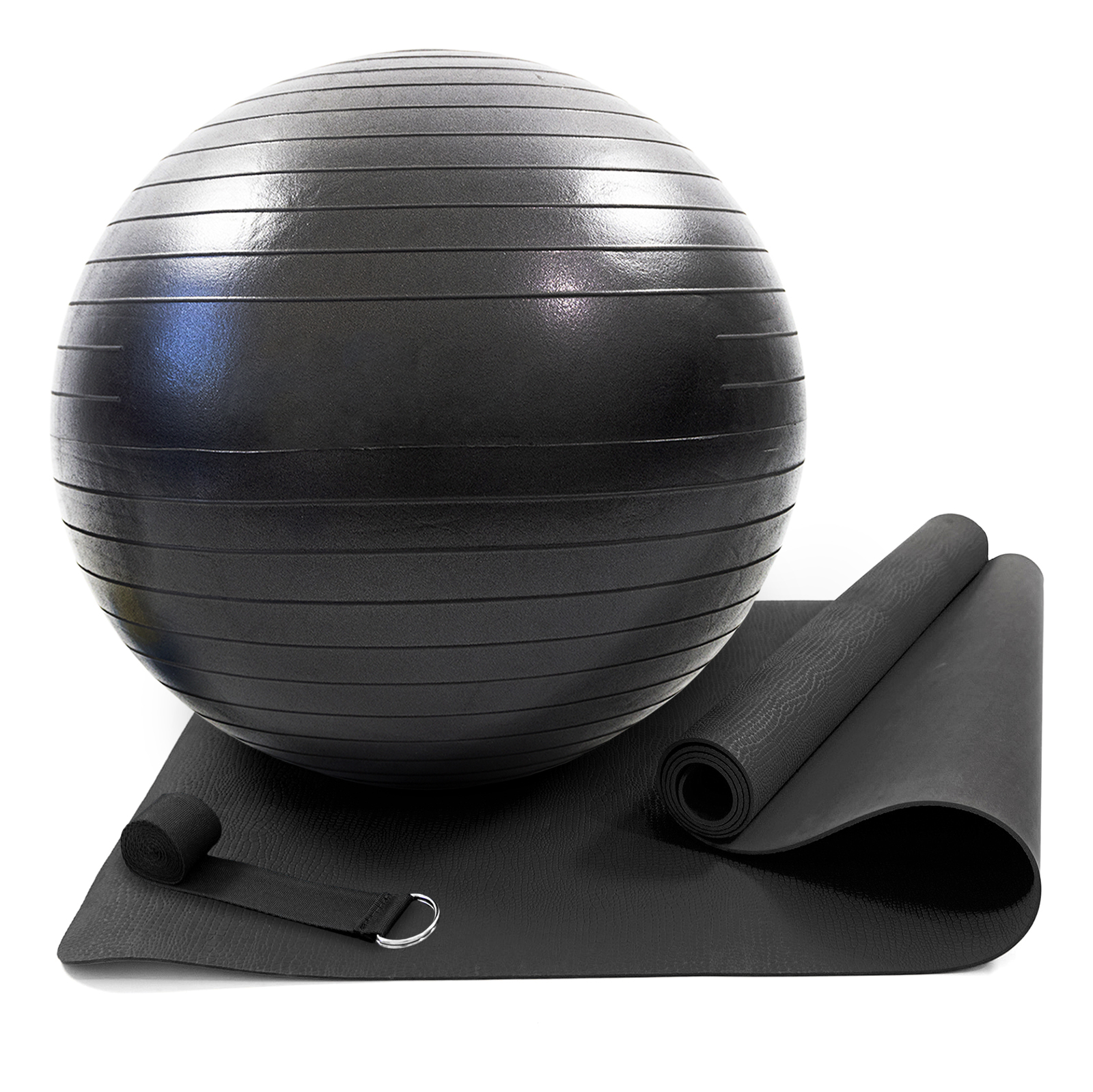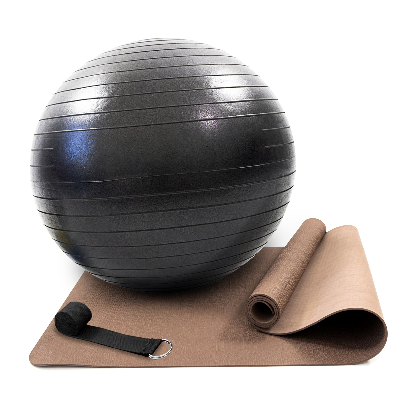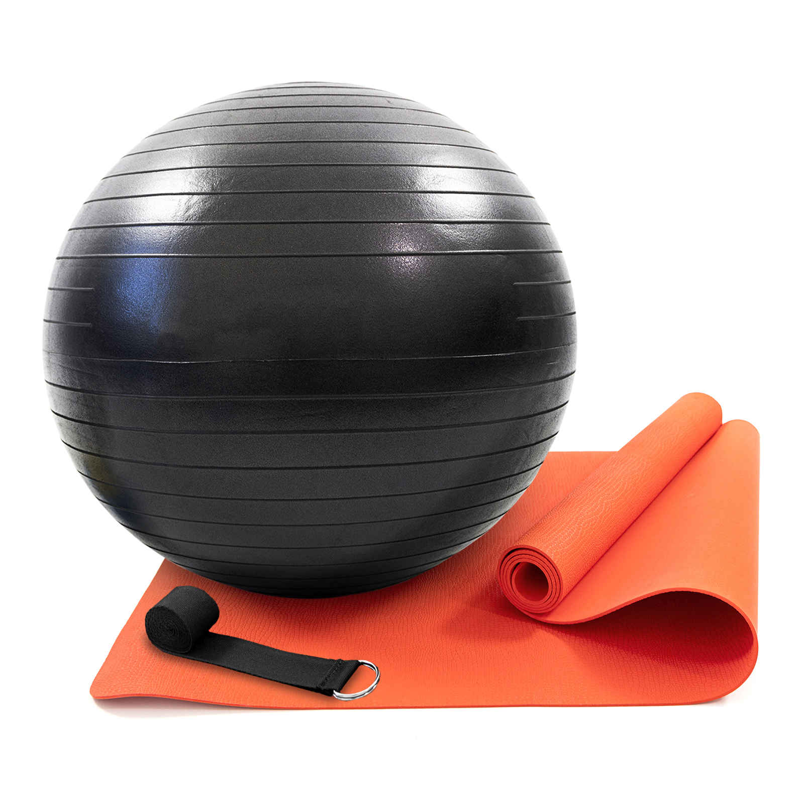 Набір для фітнесу, який складається з м'яча для фітнесу (фітболу) діаметром 75 см з насосом, килимка для йоги та спорту EVA Osport Yoga Pro 3мм та ременя для йоги та розтяжки OSPORT Asana. Цей набір стане ідеальним варіантом як для людей, які планує займатися фітнесом вдома, так і для вагітних жінок.