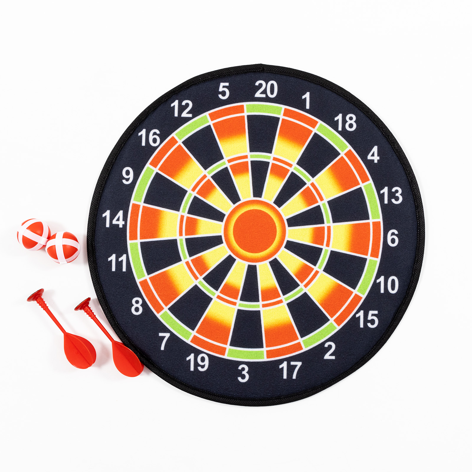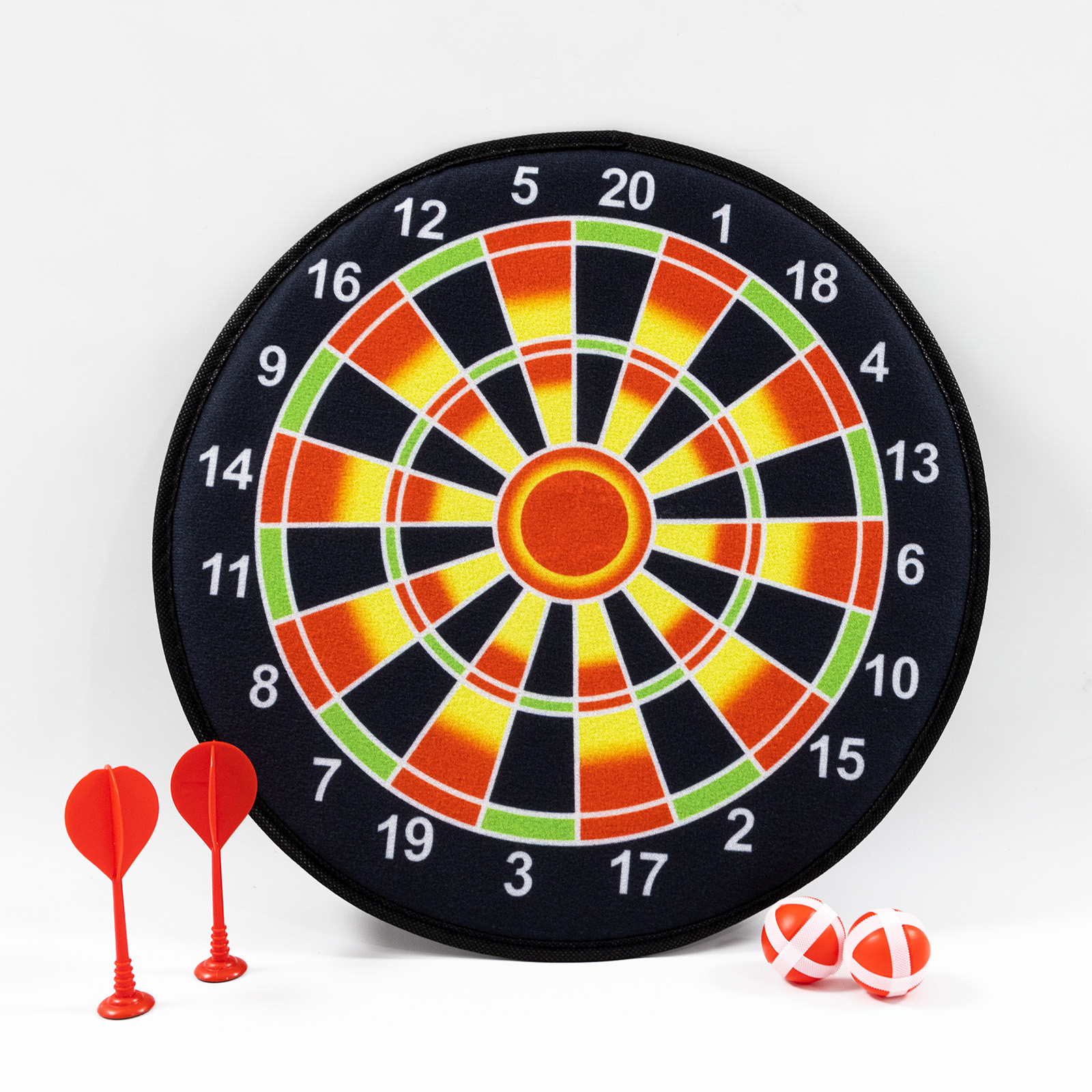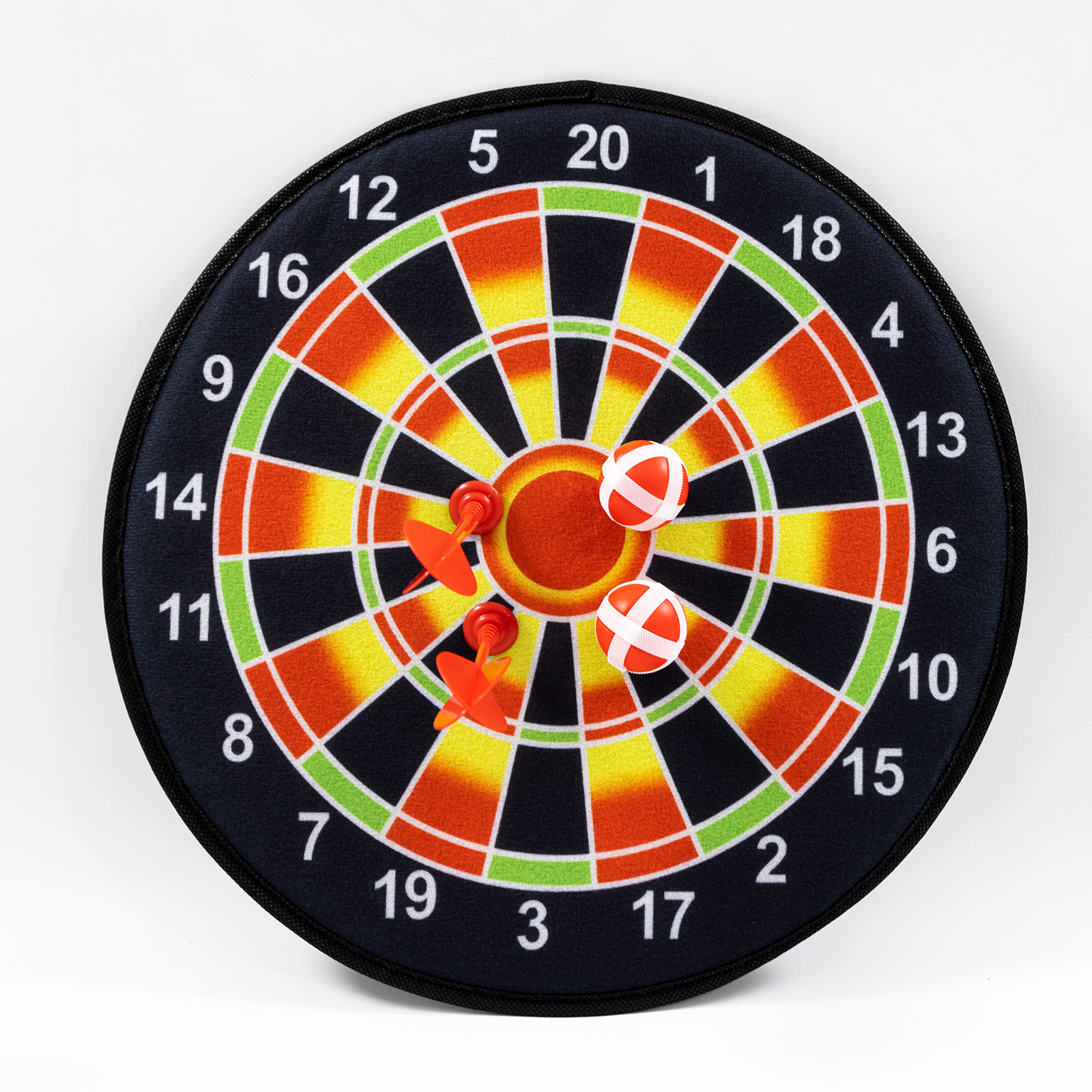 Незабутнім подарунком для дитини безперечно буде дартс на липучках. Дана модель двостороння, виготовлена з алюмінію та якісного формованого паперового волокна. Розмір ігрової поверхні 36 див. У комплекті йде набір їх 2 дротиків і 2 кульок для кидків. Гра розвиває точність, моторику рук і відточує окомір.
