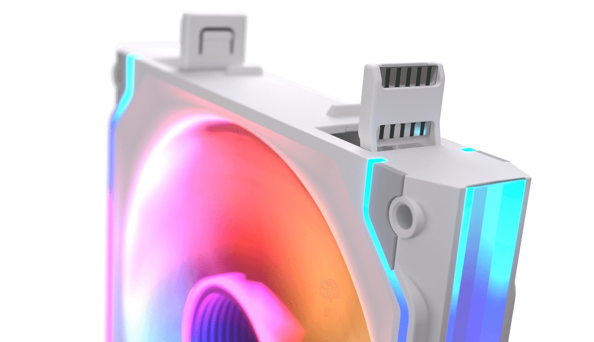 Модульні вентилятори – це шлях у майбутнє: система швидкороз'ємних з'єднань забезпечує просте послідовне з'єднання для швидкої та безпроблемної збірки. Покращені канали повітряного потоку підвищують ефективність та знижують шум за рахунок поділу повітряного потоку на мінімальні потоки. Конструкція нескінченного дзеркала забезпечує динамічні ефекти підсвічування, доповнені світлодіодним оздобленням, що створює безперервний контур.
