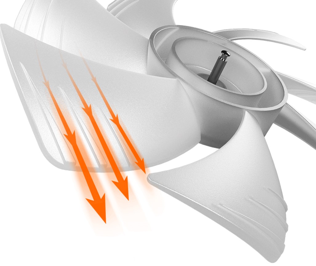 Зміна орієнтації лопатей вентилятора змінює напрямок обертання на протилежний, спрямовуючи повітря у напрямку, протилежному руху стандартних вентиляторів з лопатями, що спрямовані вперед.