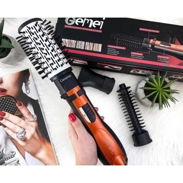 Фен-стайлер Gemei GM 4828 - фен-щітка з обертовою насадкою, холодним обдуванням і функцією випрямлення волосся