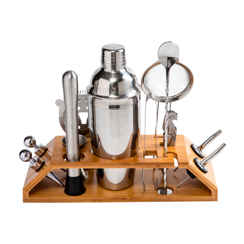 ©➀Набір для бару 13 предметів Youchen MC-SDE шейкер для коктейлів із нержавіючої сталі з бамбуковим стендо KU-22