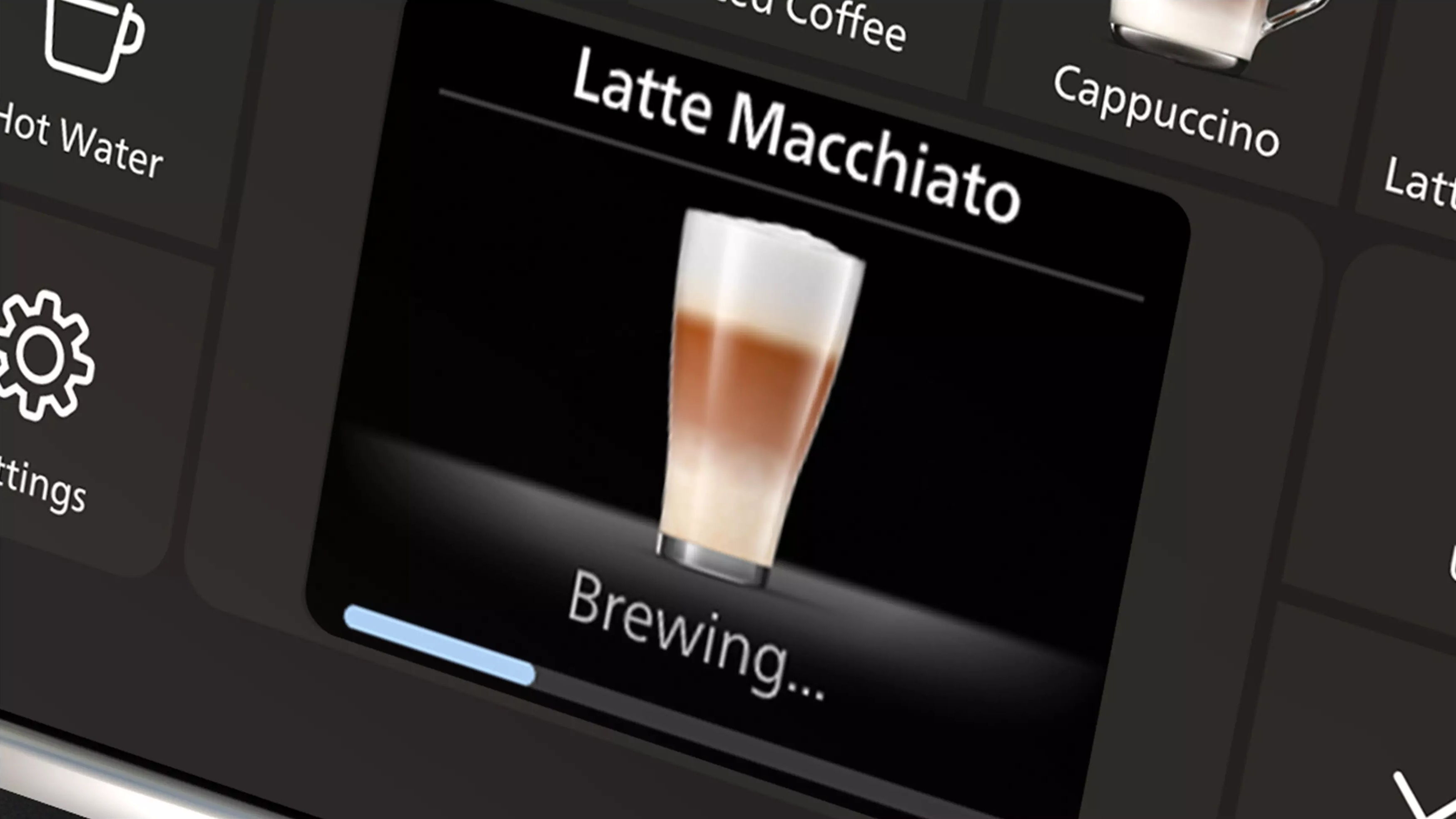 Насолоджуйтесь 20 видами гарячих та холодних напоїв, доступних для приготування з екрана керування кавомашиною.