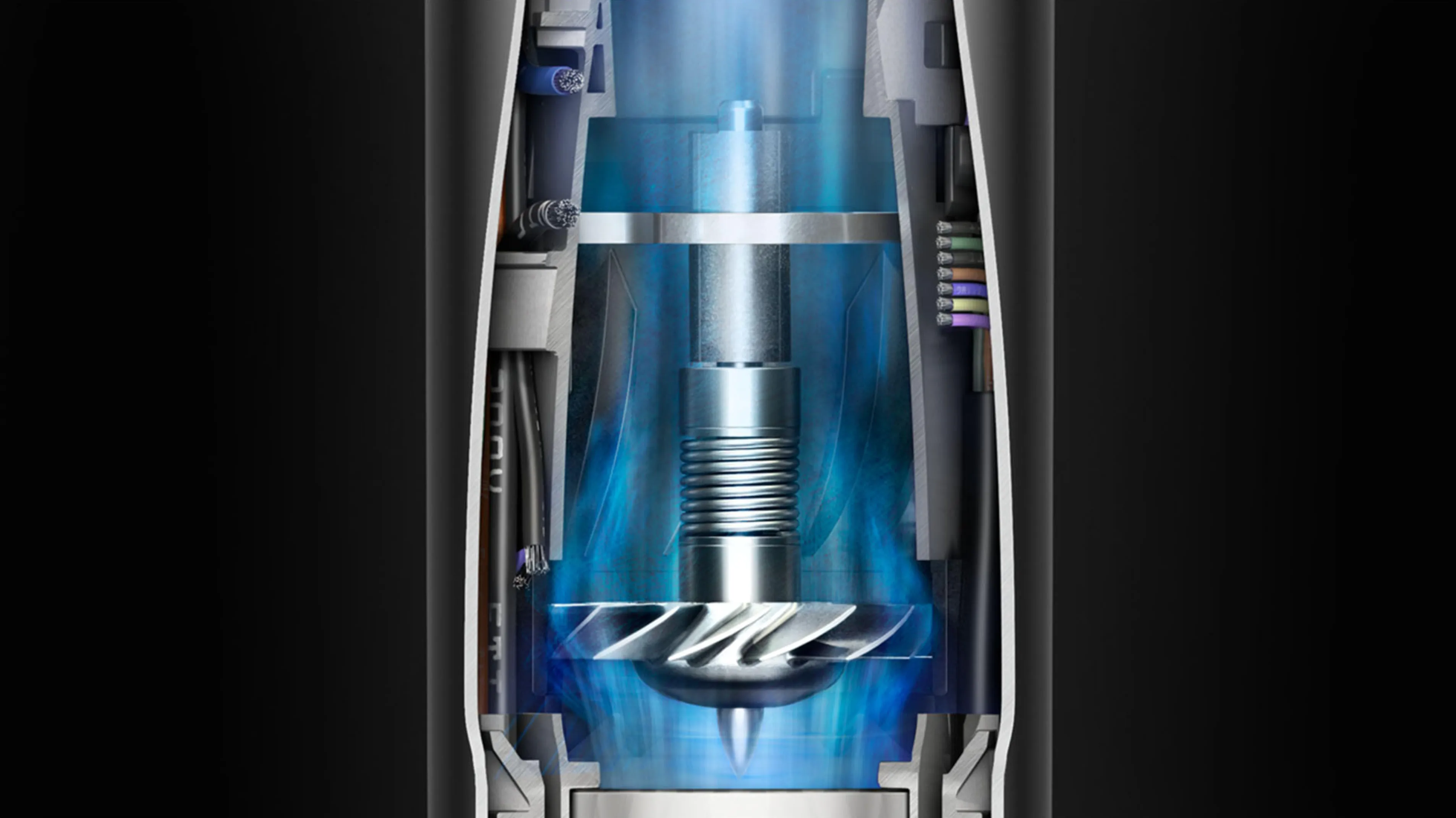 Його 13-лопатевий імпеллер обертається зі швидкістю до 110 000 об/хв, нагнітаючи повітря під тиском в 3,2 кПа, що дозволяє досягти ефекту Коанда. Мультистайлер і фен Dyson Airwrap™ використовує аеродинамічне явище, яке називається ефектом Коанда, що приводиться в дію цифровим двигуном Dyson V9. Він використовує повітря, щоб притягувати і накручувати волосся на стовбур або поверхню щітки.
