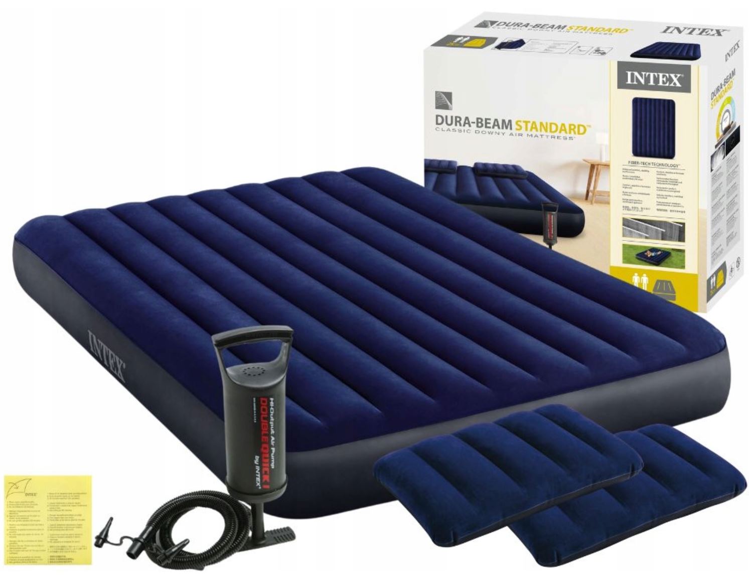 Надувний матрац Intex 64765 з насосом і подушками 203x152x25 см для відпочинку і туризму