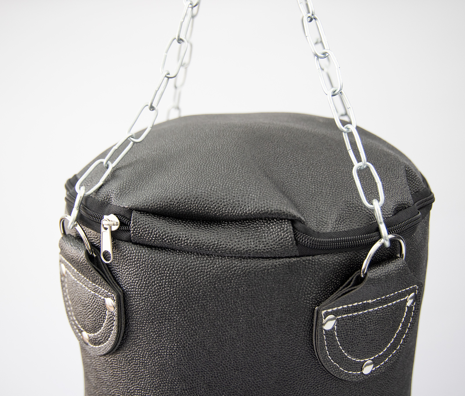 - Кріплення для мішка виготовлене з якісного матеріалу та має добре загнуту форму, яка не дозволяє зіскакувати груші з гачка. Така конструкція забезпечує безпеку тренувань.