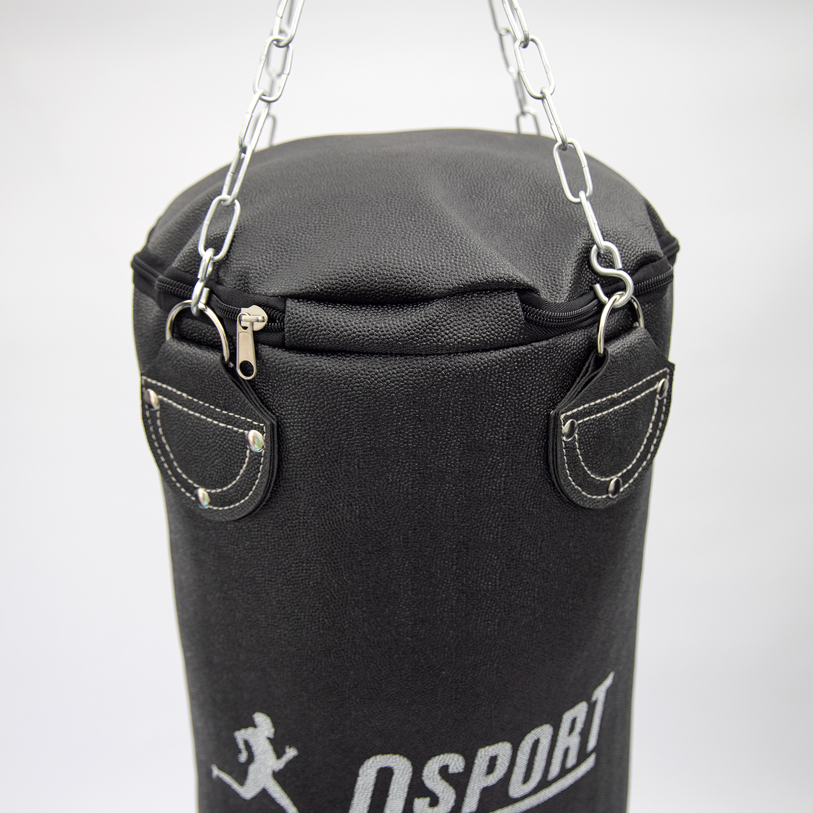 - У верхню частину боксерського мішкаOSPORT Pro 1.4 м Кірза вставлені чотири сталеві кільця, які використовуються для зручного кріплення та підвіски спортивного снаряда.