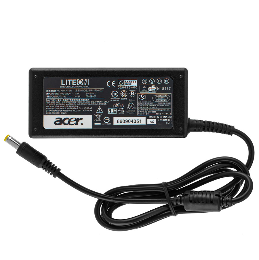 Блок живлення ACER 19V 3.42A 65W призначений для забезпечення надійного живлення ноутбуків та інших пристроїв, що вимагають відповідної напруги та струму. Він виконаний у чорному кольорі та має прямий роз'єм для підключення.