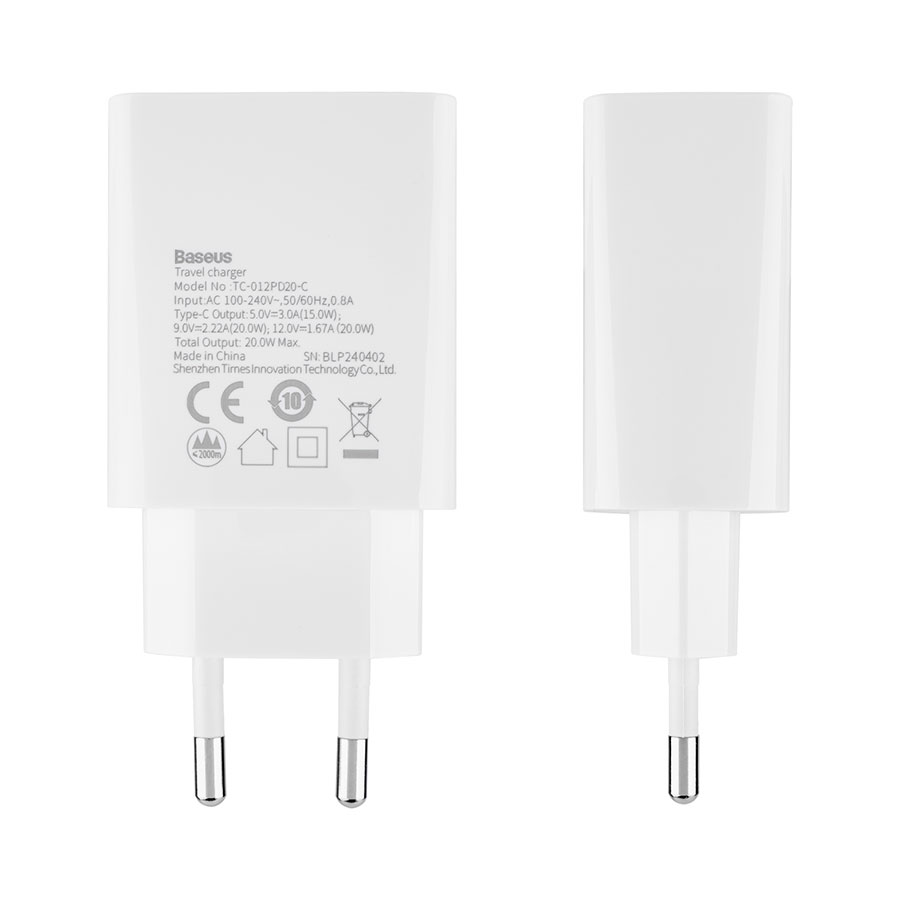 - Зарядний пристрій Baseus Speed Mini Quick Charger 20W EU White.