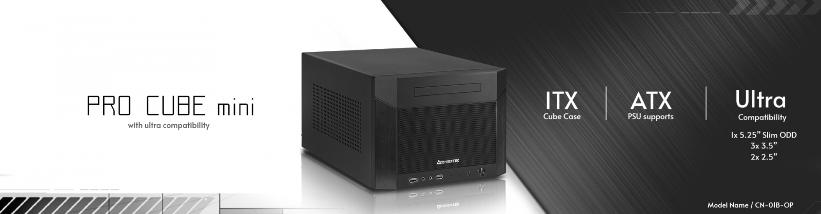 Chieftec Pro Cube MiniCHIEFTEC ProCube Mini - це компактний, багатофункціональний корпус формату ITX, що забезпечує високу гнучкість для компонентів, які використовуються. Сумісний з блоками живлення ATX, двослотовими графічними процесорами довжиною до 320 мм, 3 3,5-дюймовими жорсткими дисками, 2 2,5-дюймовими твердотільними накопичувачами, а також тонким оптичним приводом, ProCube є чудовим прикладом високофункціонального дизайну в компактному корпусі. Завдяки дизайну передньої панелі, що елегантно поєднує сітку та шліфований алюміній, ProCube Mini ідеально впишеться в будь-який інтер'єр - від вітальні до домашнього офісу, а також у будь-яке корпоративне робоче середовище.