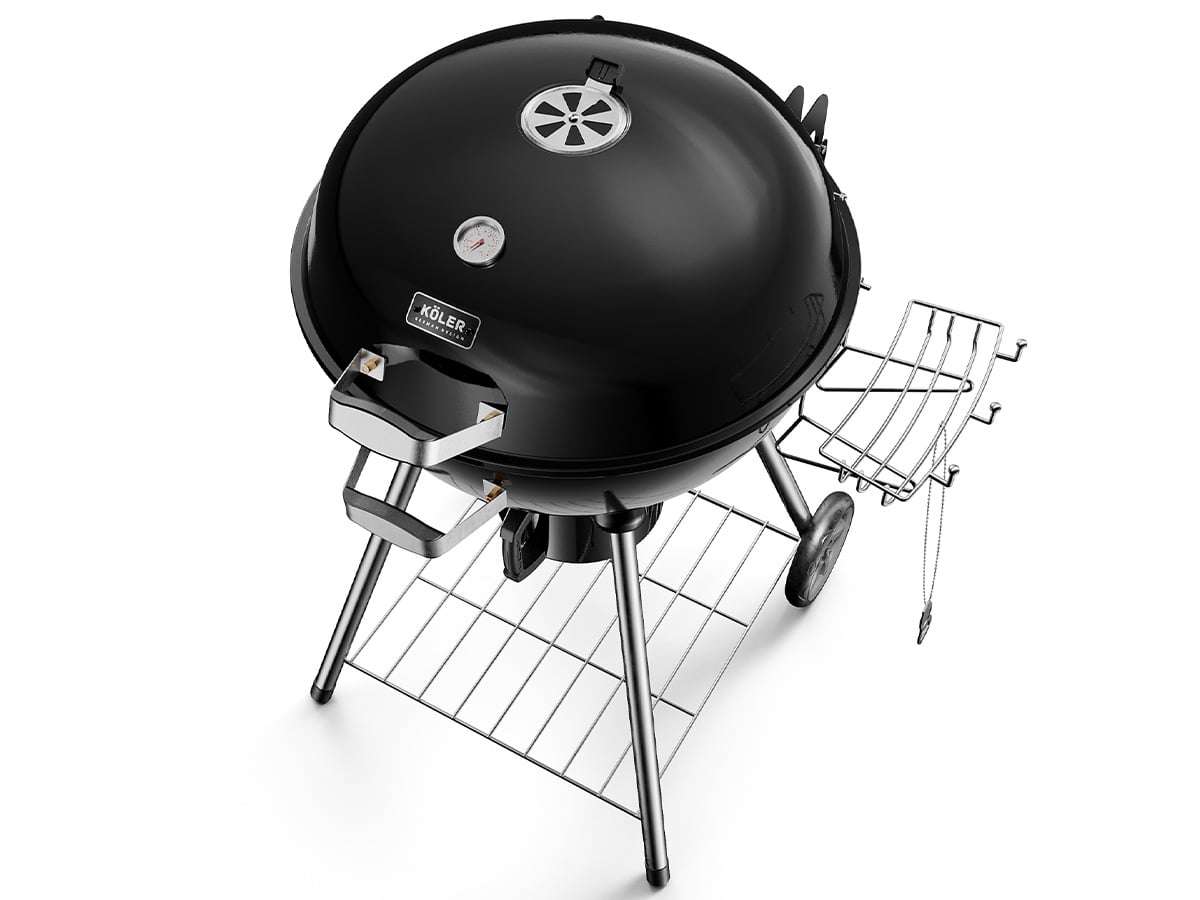 Гриль на вугіллі Köler Ember C2Гриль на вугіллі KÖLER EMBER C2 - це компактний, але дуже функціональний прилад. Його решітка діаметром 54 см дає вам повну свободу для приготування страв на грилі, незалежно від місця розташування. Ідеально підходить для заходів на свіжому повітрі, кемпінгу або пляжу, а також для вашого саду. Високоякісна кришка та котел, виготовлені зі сталі та захищені порцеляновою емаллю, забезпечують довговічність та стійкість до пошкоджень. Тому ви можете бути впевнені, що ваше барбекю завжди буде готове до використання, незалежно від умов.