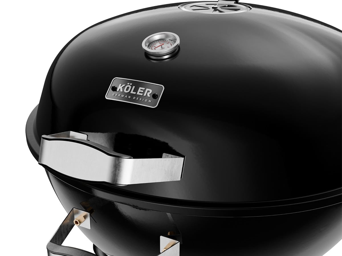 Верхній вентиляційний отвірГриль KÖLER EMBER C2 має регульований повітрозабірник у кришці, що дозволяє точно керувати теплом всередині котла. У поєднанні з нижнім вентиляційним отвором він забезпечує краще приготування страв на грилі, смаження та копчення. Вбудований термометр забезпечує швидке вимірювання температури, а панель з нержавіючої сталі захищає ручку від нагрівання. Завдяки цьому рішенню ви можете бути впевнені в комфортному та безпечному приготуванні їжі на грилі, а користувач не ризикує отримати випадковий опік при піднятті кришки.