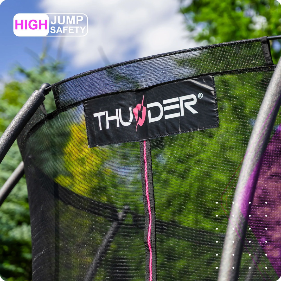 Масивне плетіння в батуті THUNDER — це гарантія тривалого використання. Завдяки шестикратному прошиванню по всьому периметру кріплення пружин забезпечують витривалість до найвищих навантажень, що безпосередньо впливає на безпеку користувачів. Стійкість до УФ-випромінювання також гарантує збереження інтенсивності кольорів та естетичного вигляду протягом багатьох років.