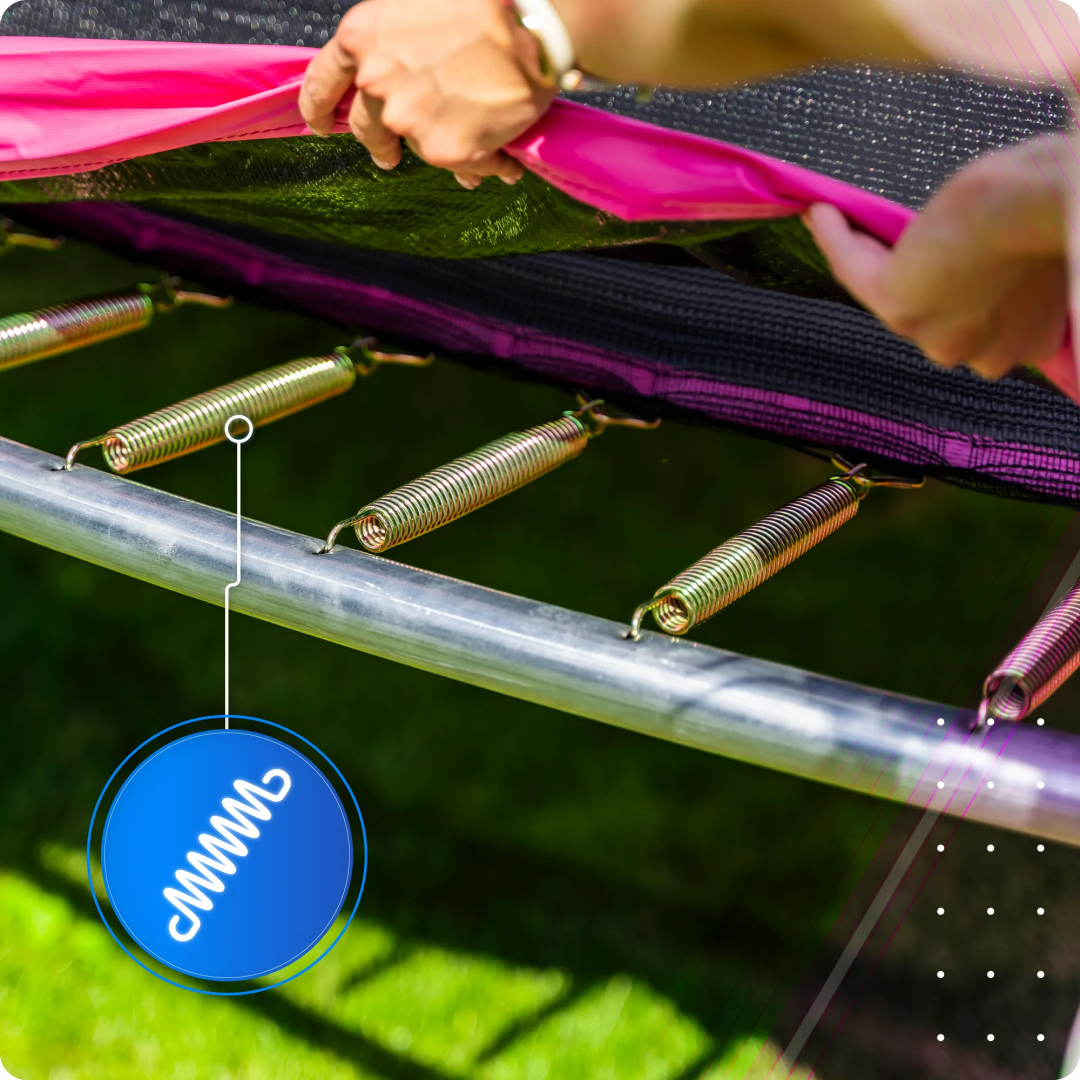 Завдяки міцним, загартованим пружинам батут збереже свою еластичність і міцність протягом багатьох років інтенсивного використання. Велика кількість пружин забезпечує додаткове зміцнення конструкції, що сприяє безпеці та стабільності під час стрибків. Навіть при невеликому навантаженні батут зберігатиме належну еластичність, що дозволить насолоджуватися всіма можливостями пристрою, не турбуючись про його технічний стан.