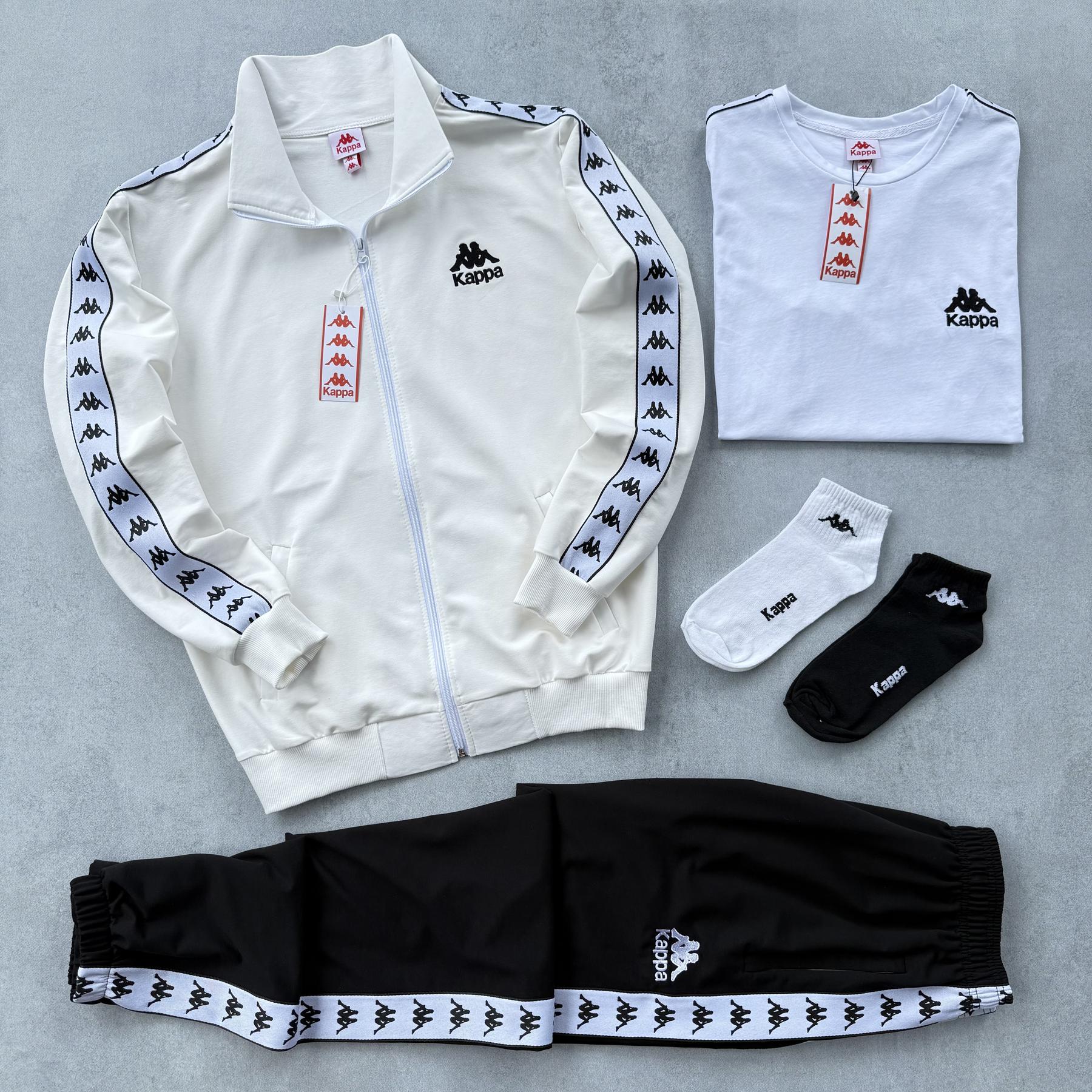 Набір Kappa кофта штани футболка 2 пари шкарпеток чорний молочний унісекс весна літо осінь BZN