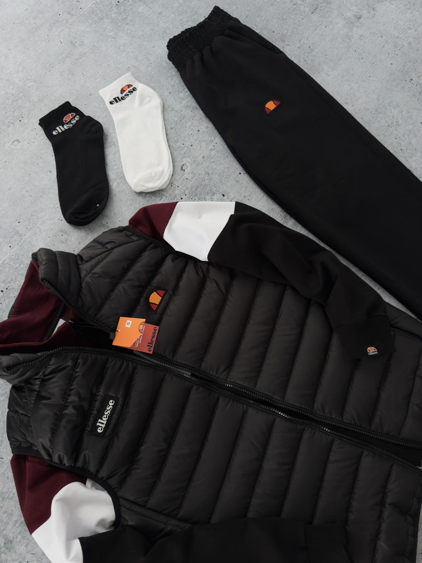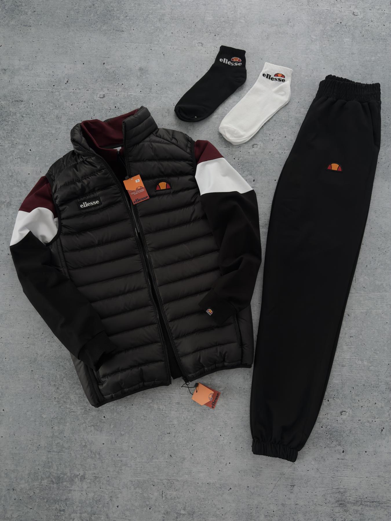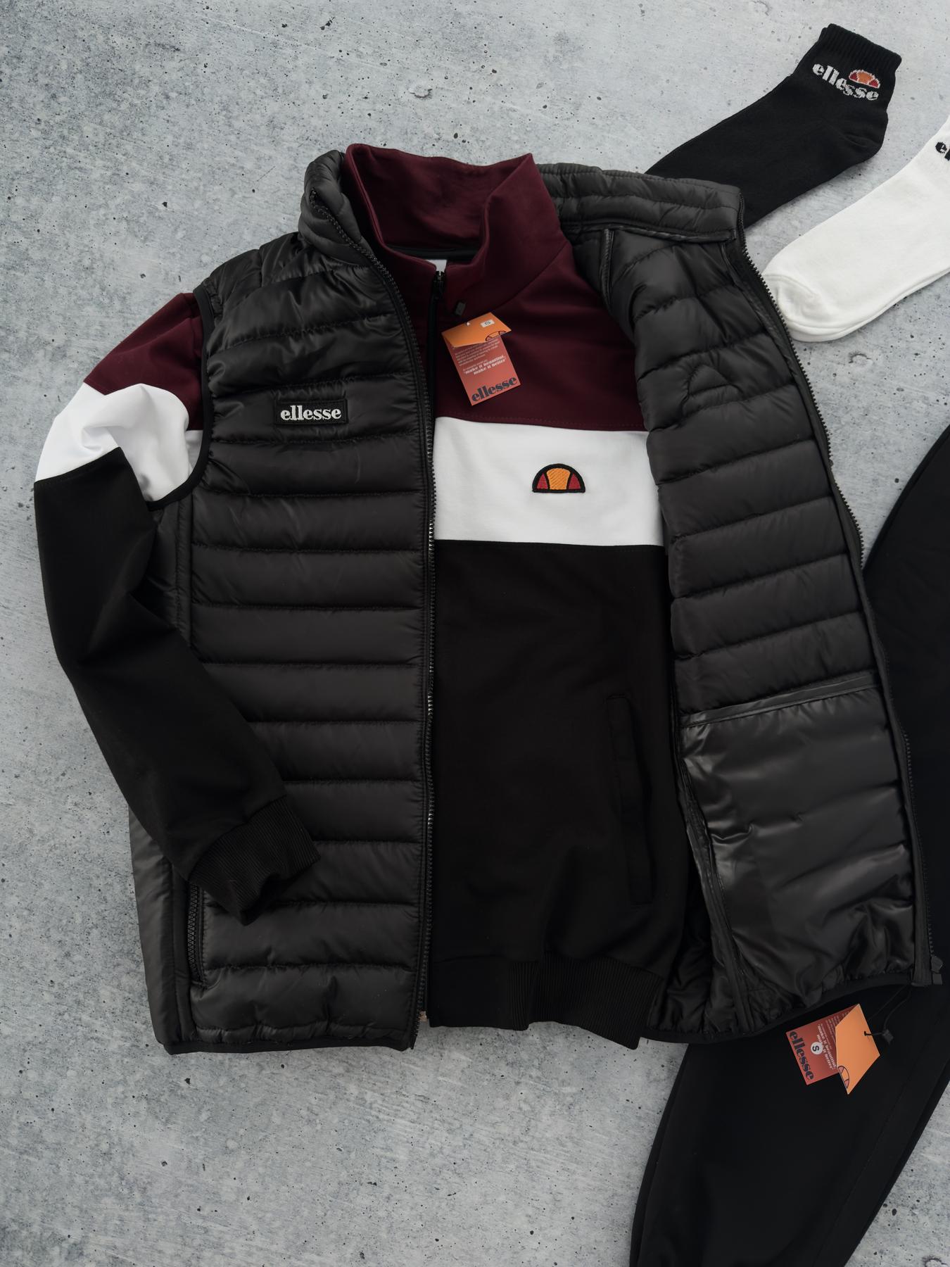 Набір Ells включає в себе стильний чорний жилет, бордову кофту та чорні штани, які ідеально поєднуються один з одним для створення модного образу. Цей комплект підходить для різних заходів та повсякденного носіння.