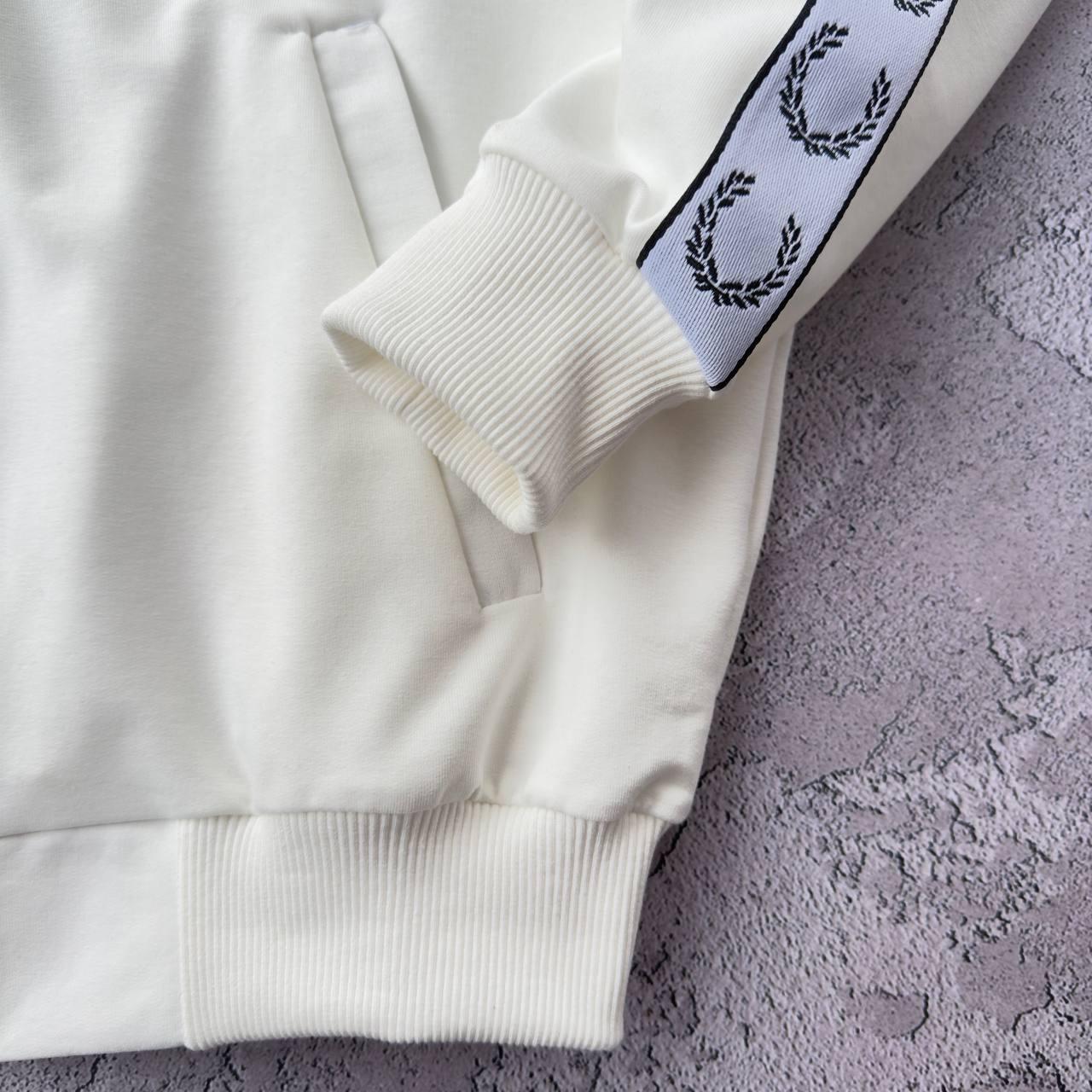 Костюм Fred Perry молочний лампас кофта штани унісекс з логотипом кишені на блискавці BZN