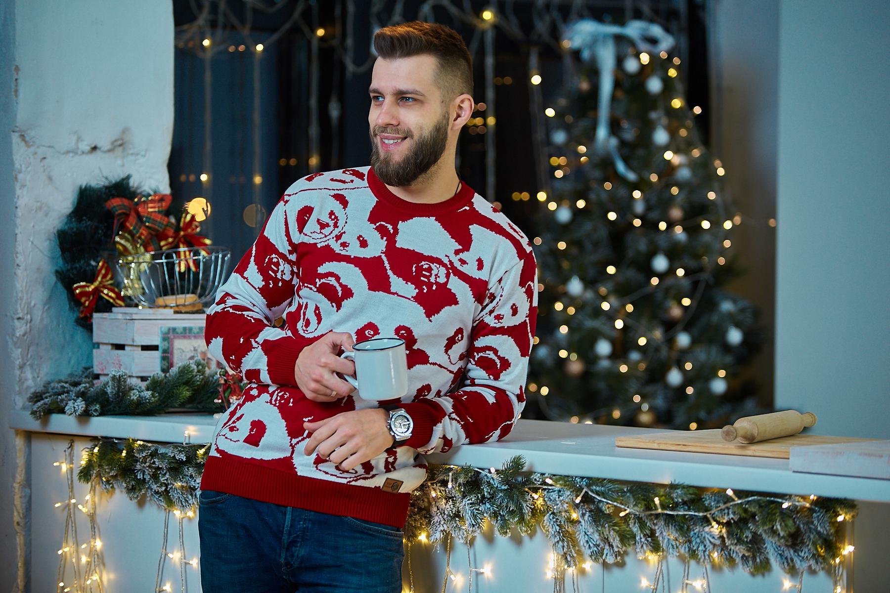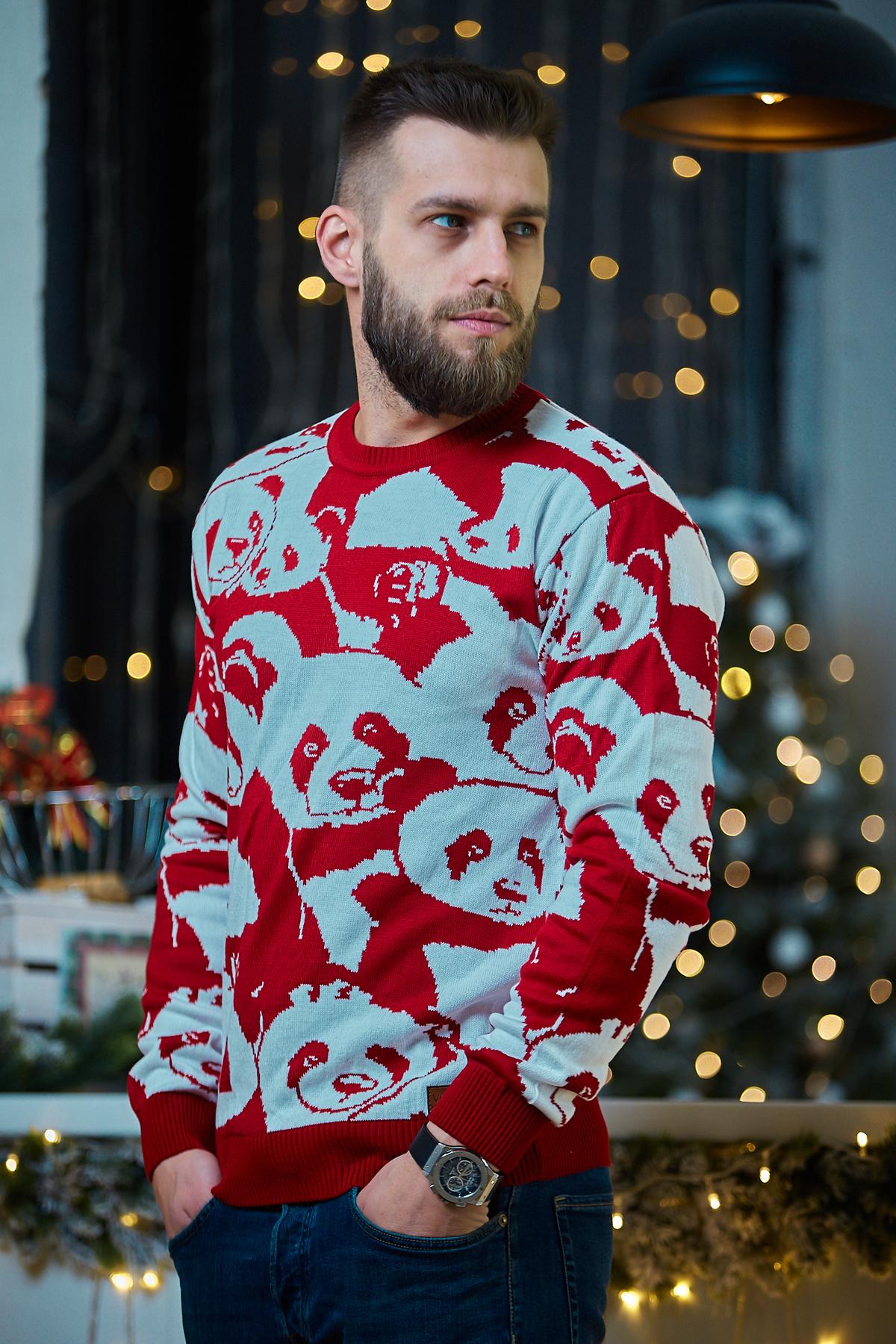 Светр панда червоний для дітей та дорослих – теплий затишний стильний зимовий светр, який стане відмінним доповненням до зимового гардеробу.