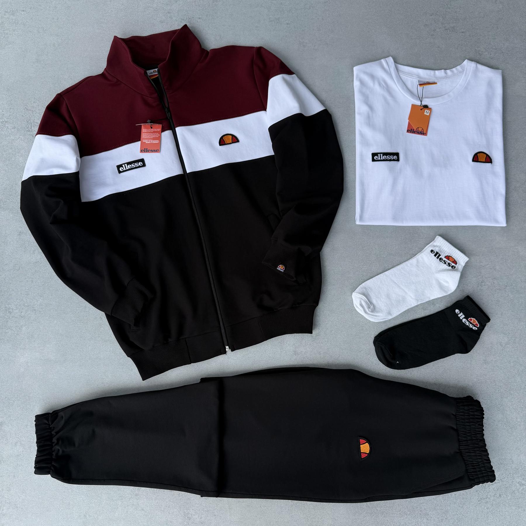 Набір Ellesse кофта бордова штани футболка біла 2 пари шкарпеток в подарунок унісекс Туреччина BUV