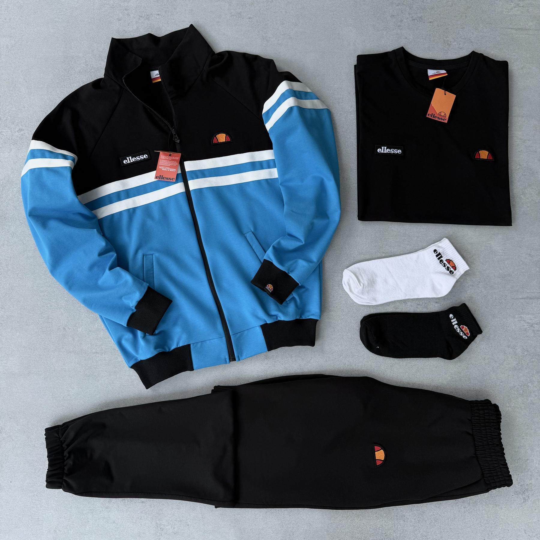 Набір Ellesse кофта штани футболка 2 пари шкарпеток у подарунок блакитний сірий чорний 100% бавовна унісекс BUV