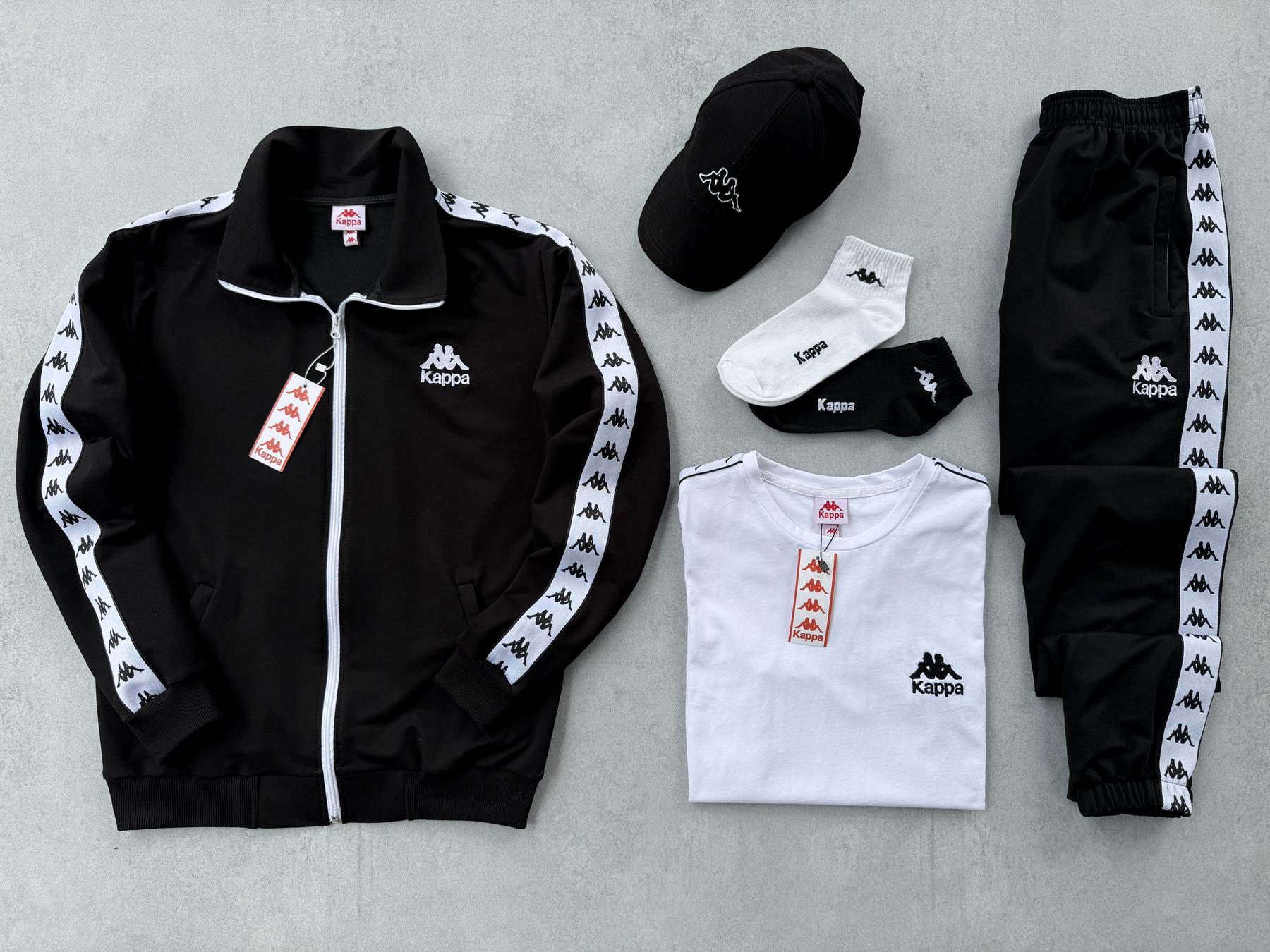 Набір Kappa кофта штани футболка кепка 2 пари шкарпеток чорний молочний унісекс весна літо осінь BUV