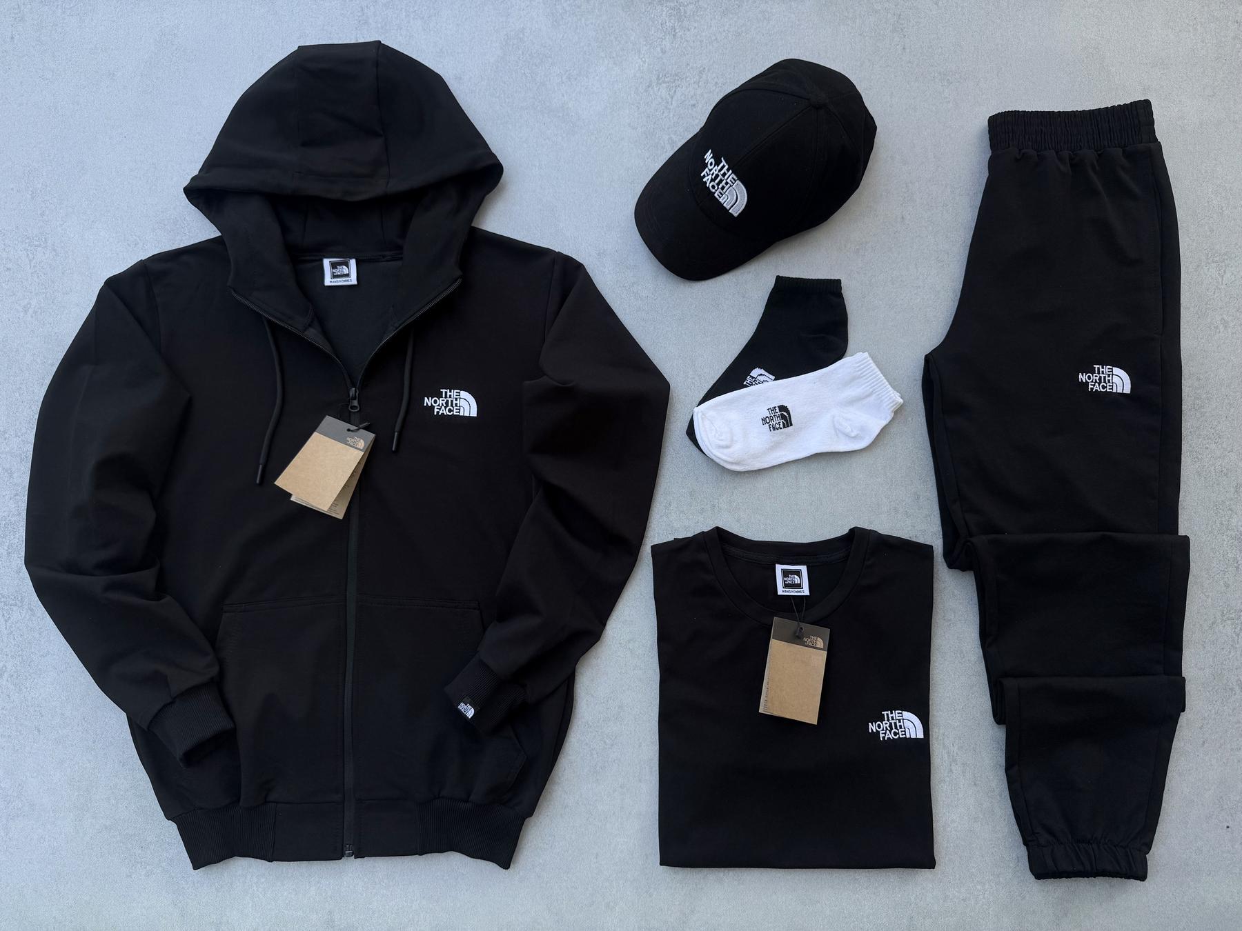 Набір THE NORTH FACE кофта штани футболка кепка 2 пари шкарпеток унісекс чорний білий BUV