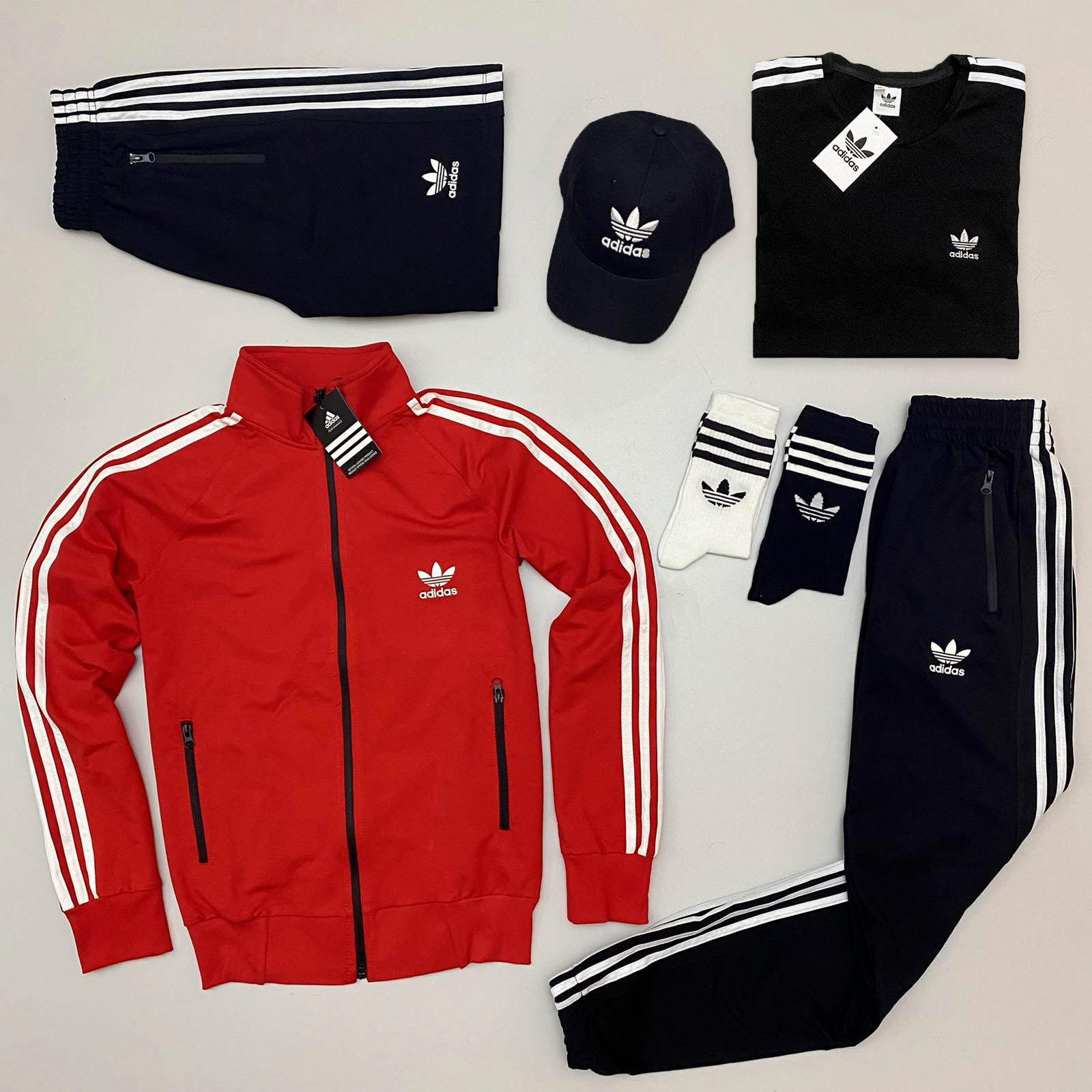 Набір 7в1 Adidas кофта штани футболка шорти кепка носки 95% бавовна 5% еластан чорний червоний білий синій хакі BUV