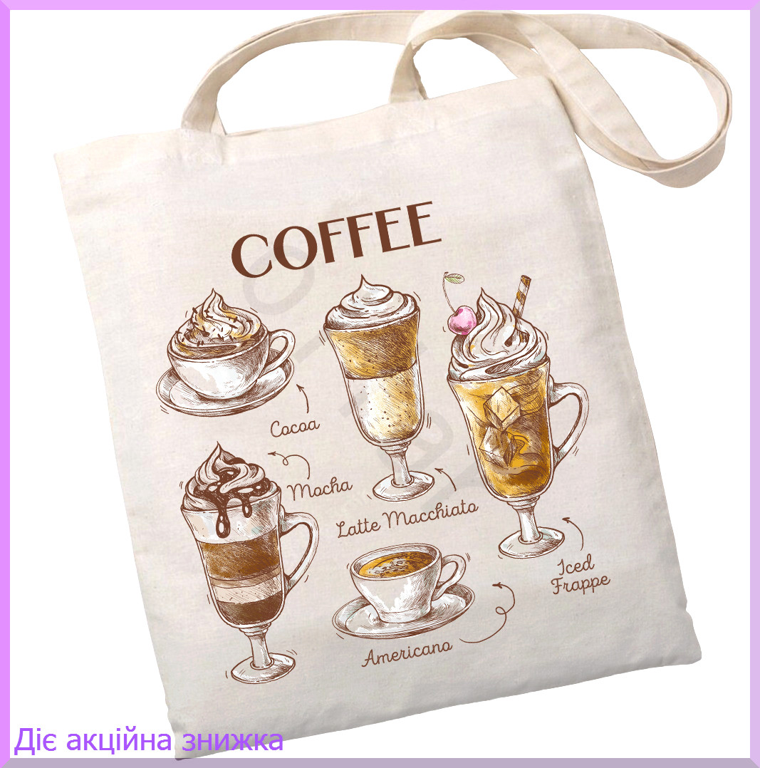 Екошопер BookOpt "But first Coffee" бежевий сумка для покупок з бавовни екологічна тканинна сумка Екошопер зі 100% бавовни (щільністю 210 г / кв.м).