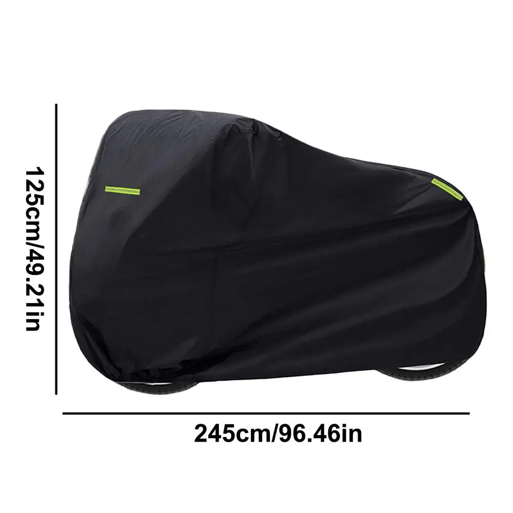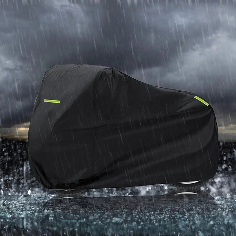 Цей чохол — ідеальне рішення для захисту мотоцикла, скутера або електровелосипеда від дощу, пилу, ультрафіолету та механічних пошкоджень. Завдяки міцному поліестеру, водонепроникній структурі та світловідбиваючим елементам, він забезпечує надійне покриття в будь-яку пору року.