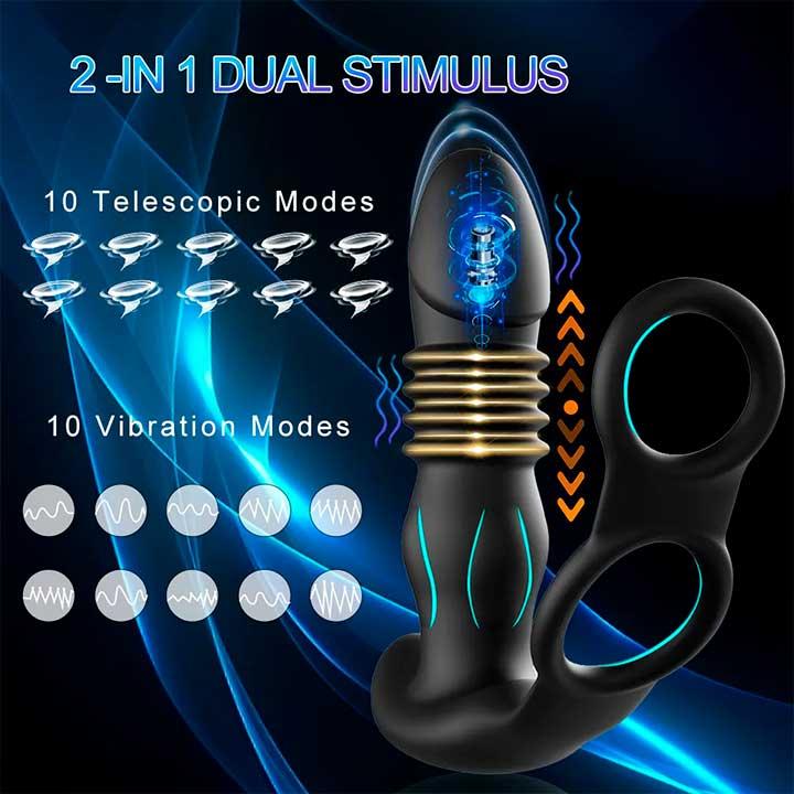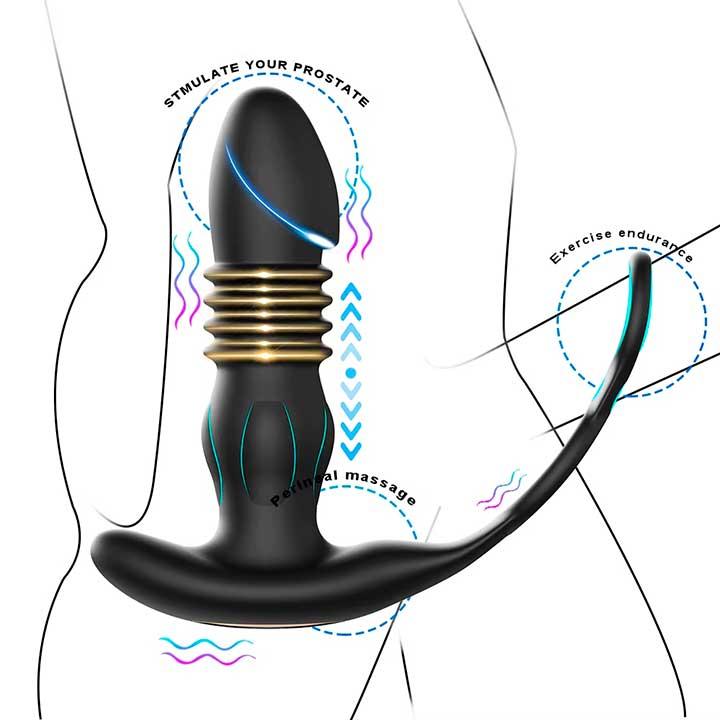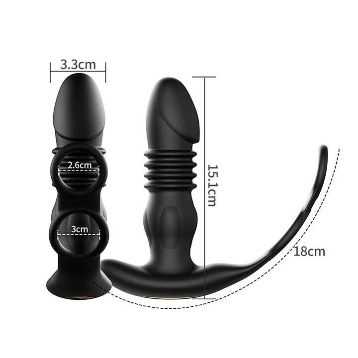 Ця анальна іграшка об'єднує три функції в одному пристрої: масажер простати, вібрувальний анальний корок та ерекційне кільце. Поступальні та вібраційні рухи спрямовані на точну стимуляцію Вашої P-точки, забезпечуючи глибоке та інтенсивне задоволення. Рельєфна основа додатково впливає на перинеум, що підсилює загальні відчуття й робить процес ще приємнішим
