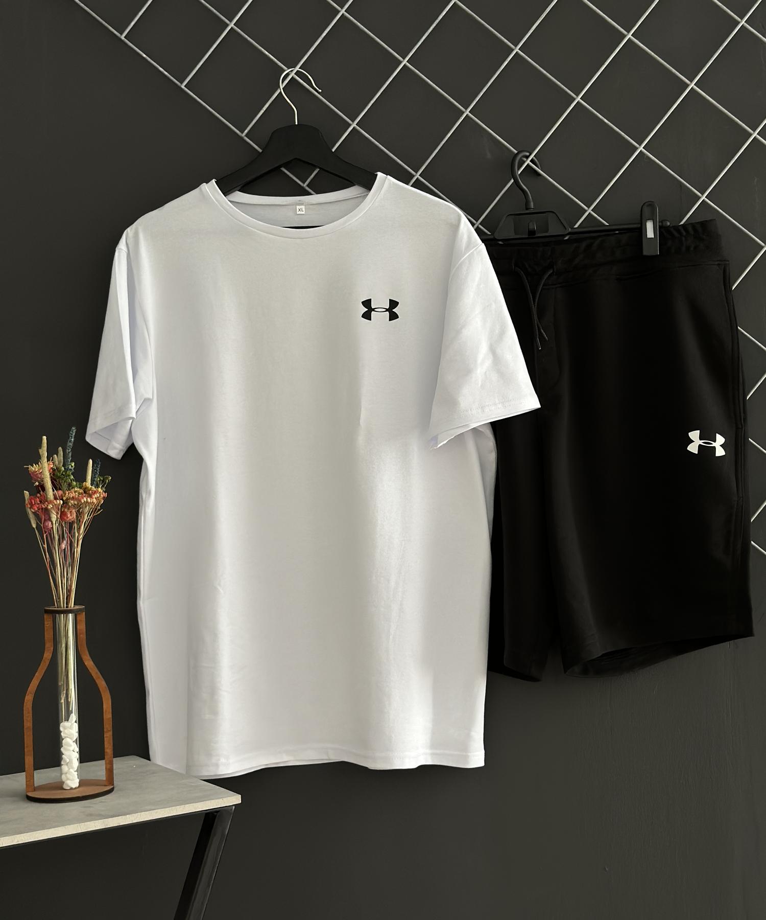 Комплект з шортів та футболки Under Armour — це ідеальне рішення для тих, хто цінує комфорт і стиль під час активного відпочинку. Футболка виготовлена з 100% бавовни, що забезпечує м'якість та дихаючість, а шорти з двонитки з вільним кроєм дарують свободу рухів. Цей комплект підходить для весни, літа та осені, що робить його універсальним вибором для будь-якої пори року.