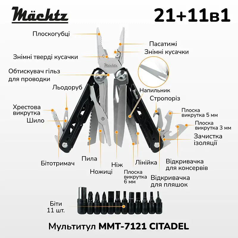 Мультитул Mächtz MMT-7121 CITADEL, у чохлі з битами