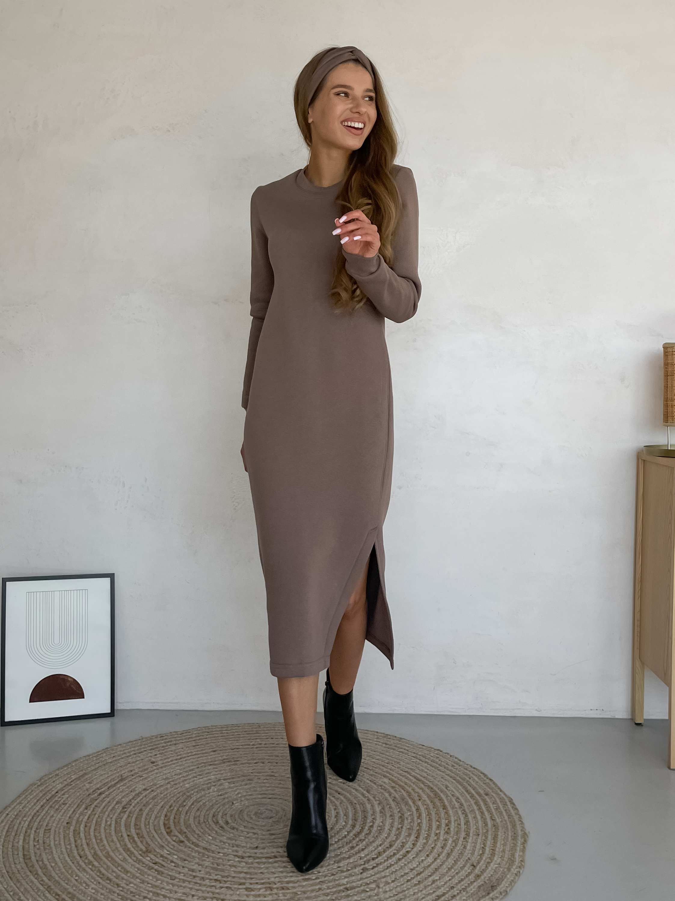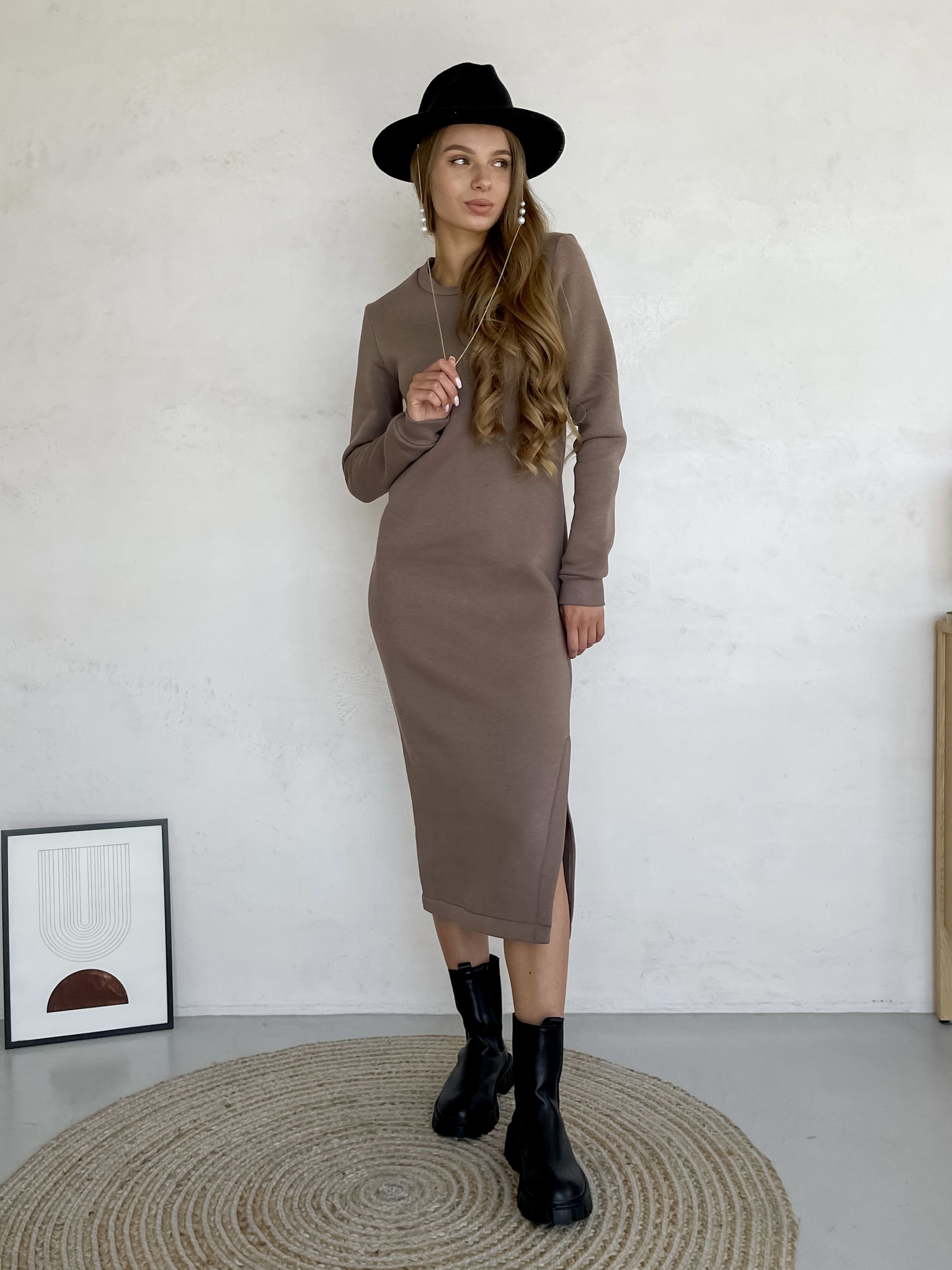 Матеріал сукні — турецька тринітка на флісі, яка має якість «Люкс Пеньє». Це означає, що сукня не буде кашлатуватися, витягуватися або випрати, що робить її ідеальним вибором для активних жінок, які хочуть виглядати стильно в будь-яку пору року.