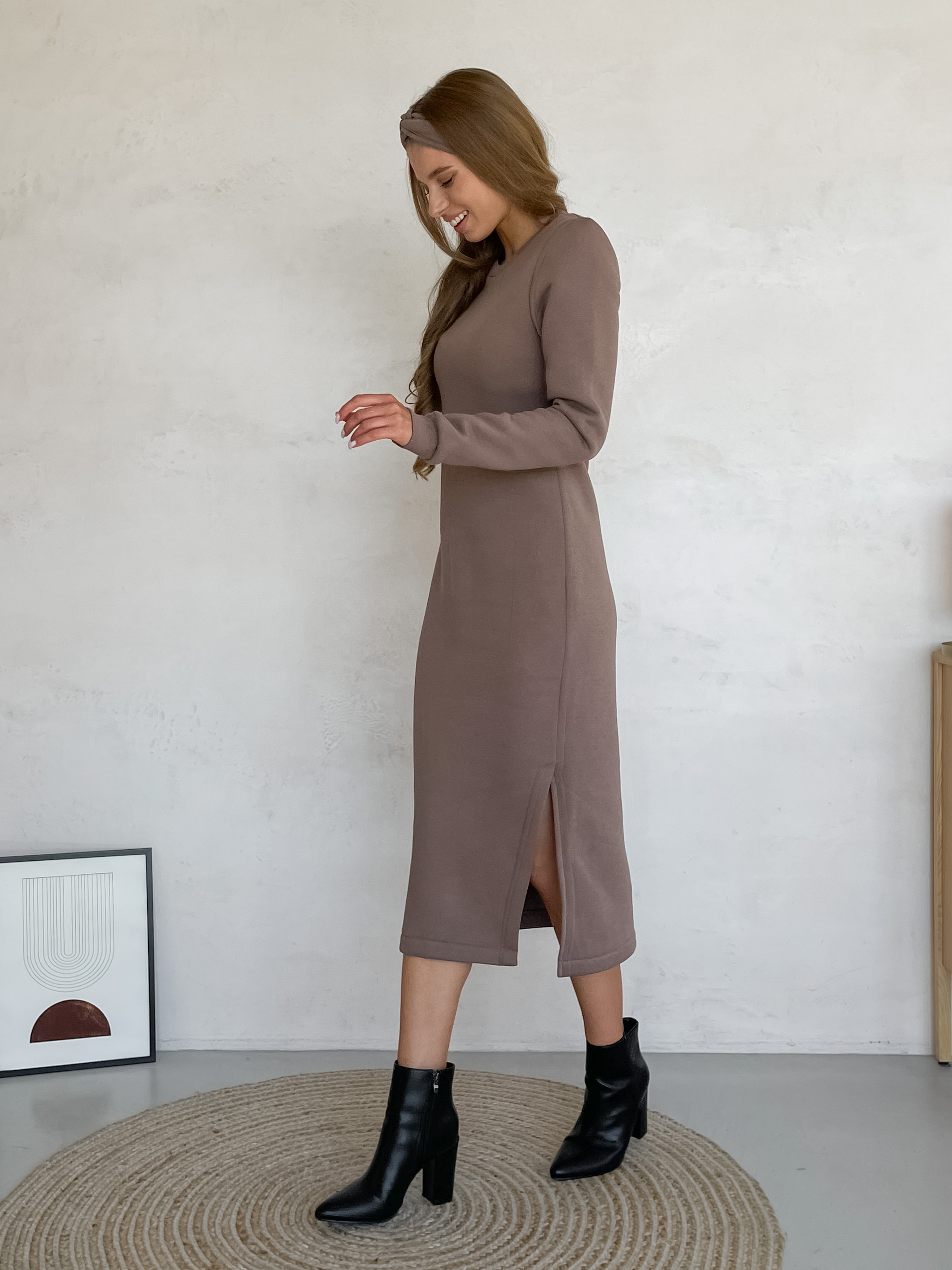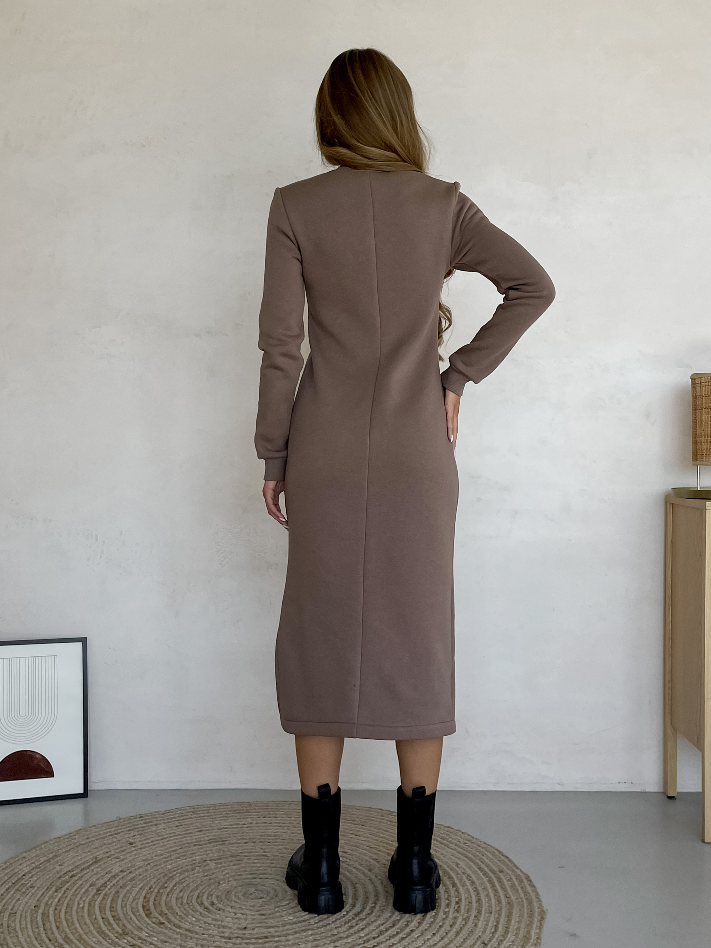 Тепла зимова сукня на флісі Merlini - це не просто одяг, а справжня знахідка для жінок, які цінують комфорт та стиль. Сукня довжиною нижче коліна з довгими рукавами та розрізом збоку ідеально підходить як для повсякденного носіння, так і для більш формальних заходів. Круглий виріз та манжети з довязу надають сукні завершеності та елегантності.