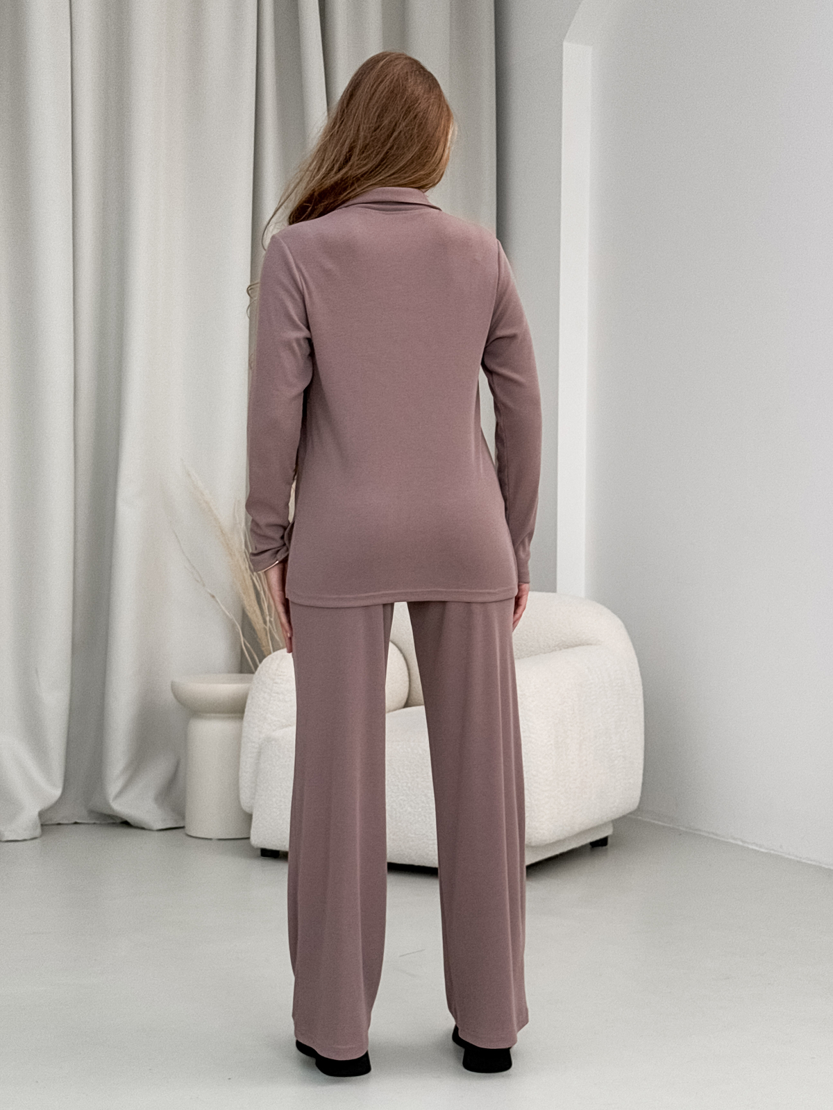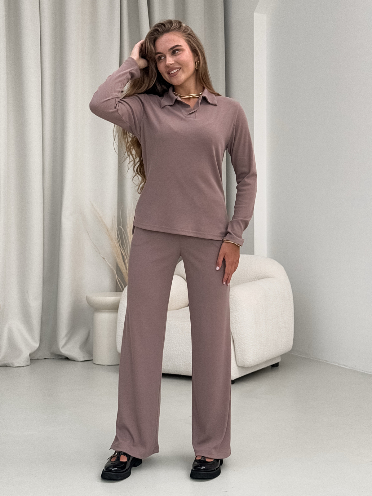 Костюм у рубчик Merlini - це ідеальний вибір для жінок, які цінують стиль та комфорт. Комплект складається з широких штанів та кофти, виконаних з якісного турецького рубчика. Штани довжиною 110 см на гумці забезпечують свободу рухів та зручність, а дві кишені додають практичності. Вільний крій кофти з відворотом робить образ легким і невимушеним, ідеальним для прогулянок, зустрічей з друзями або навіть для роботи.