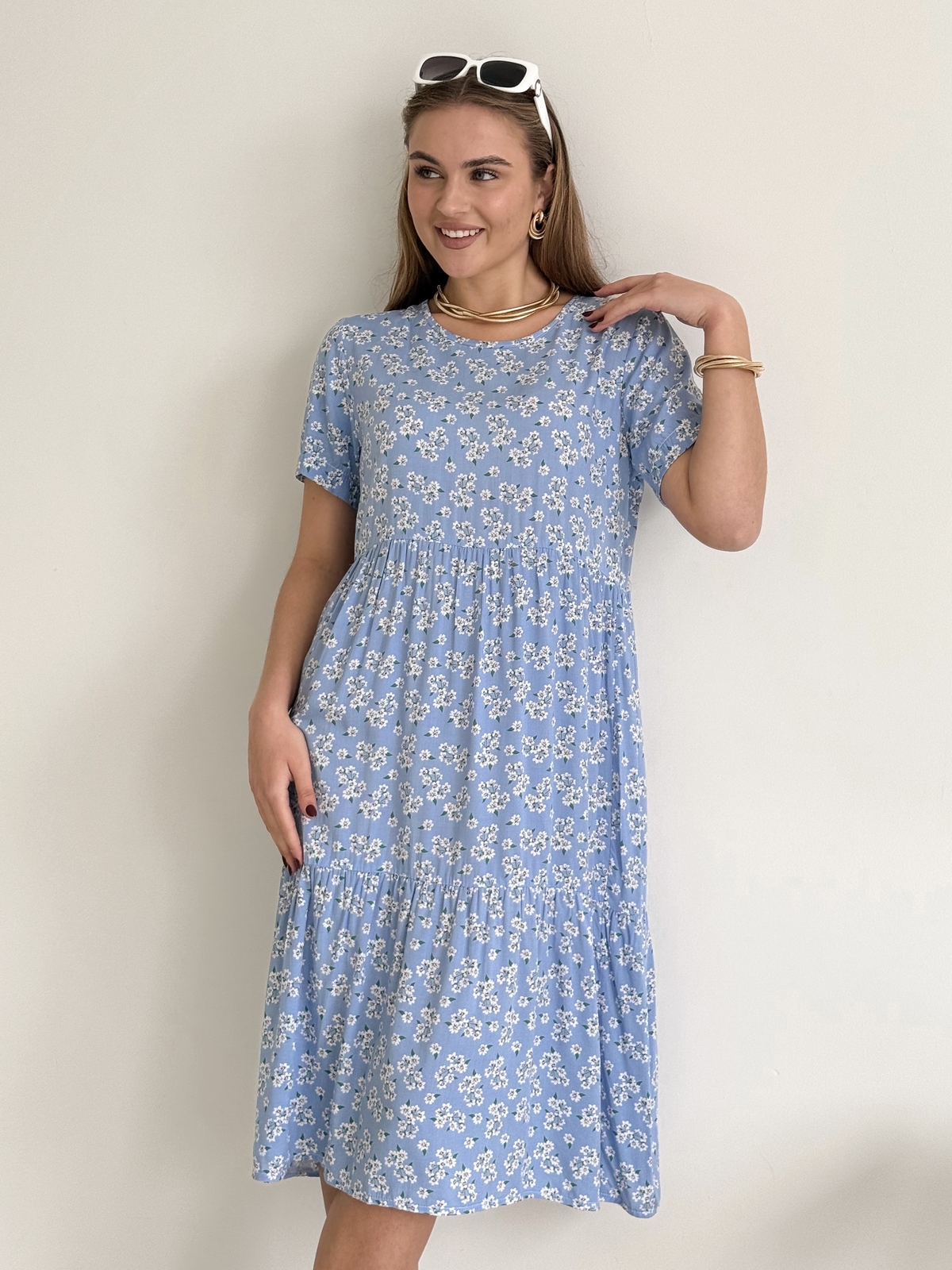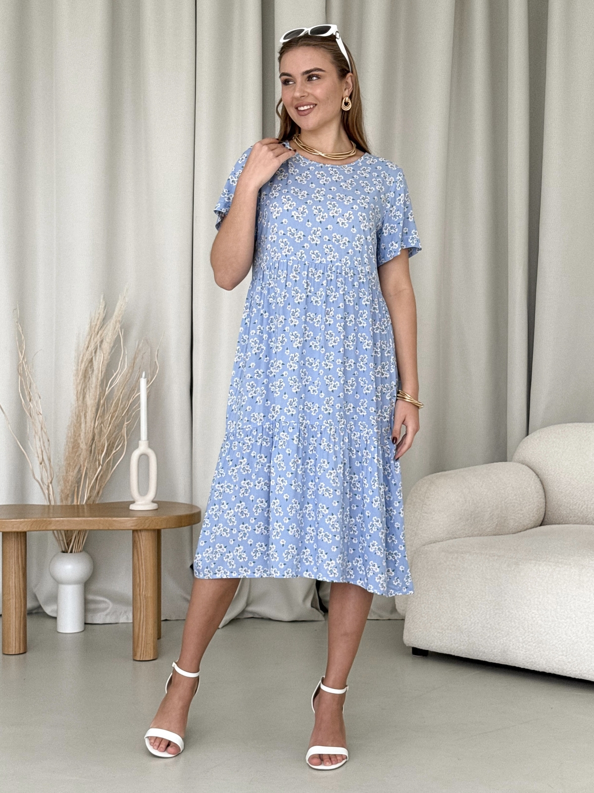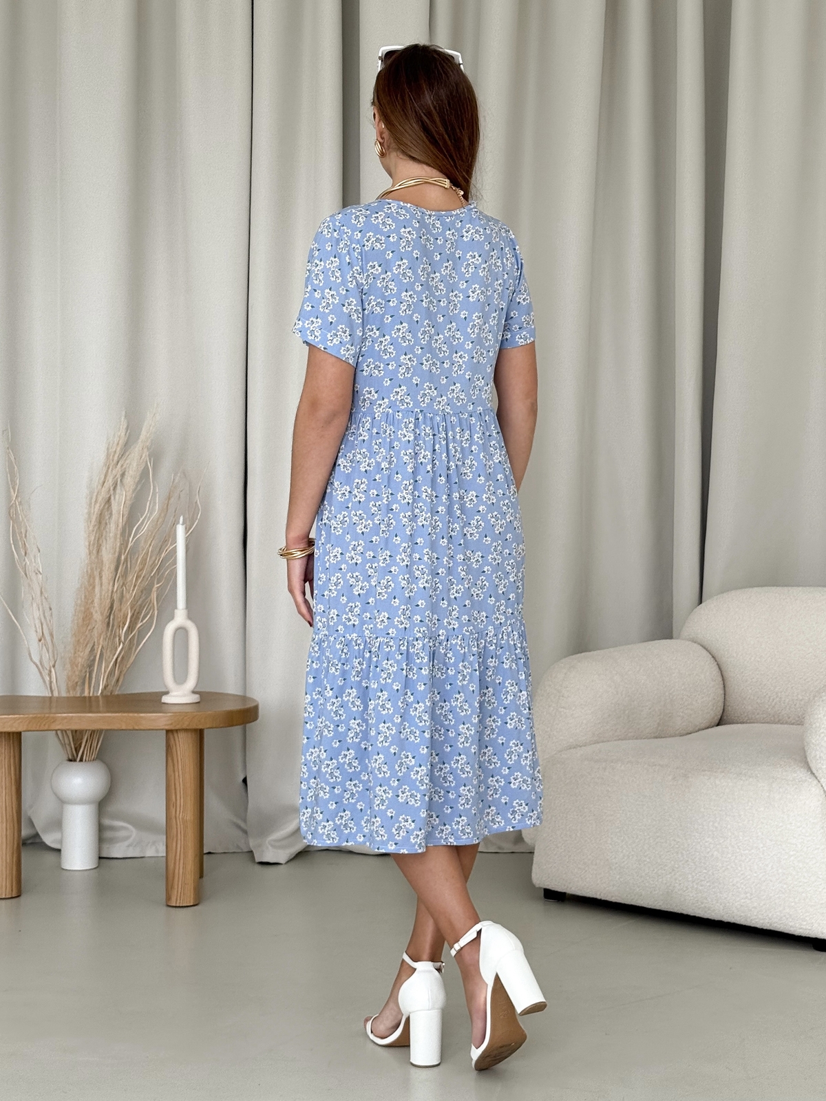 Літня сукня зі штапеля Merlini блакитна в квіточку - це не просто одяг, це можливість підкреслити вашу індивідуальність та стиль. Не пропустіть можливість додати до свого гардеробу цей універсальний і привабливий предмет одягу. Замовляйте зараз, поки товар доступний!