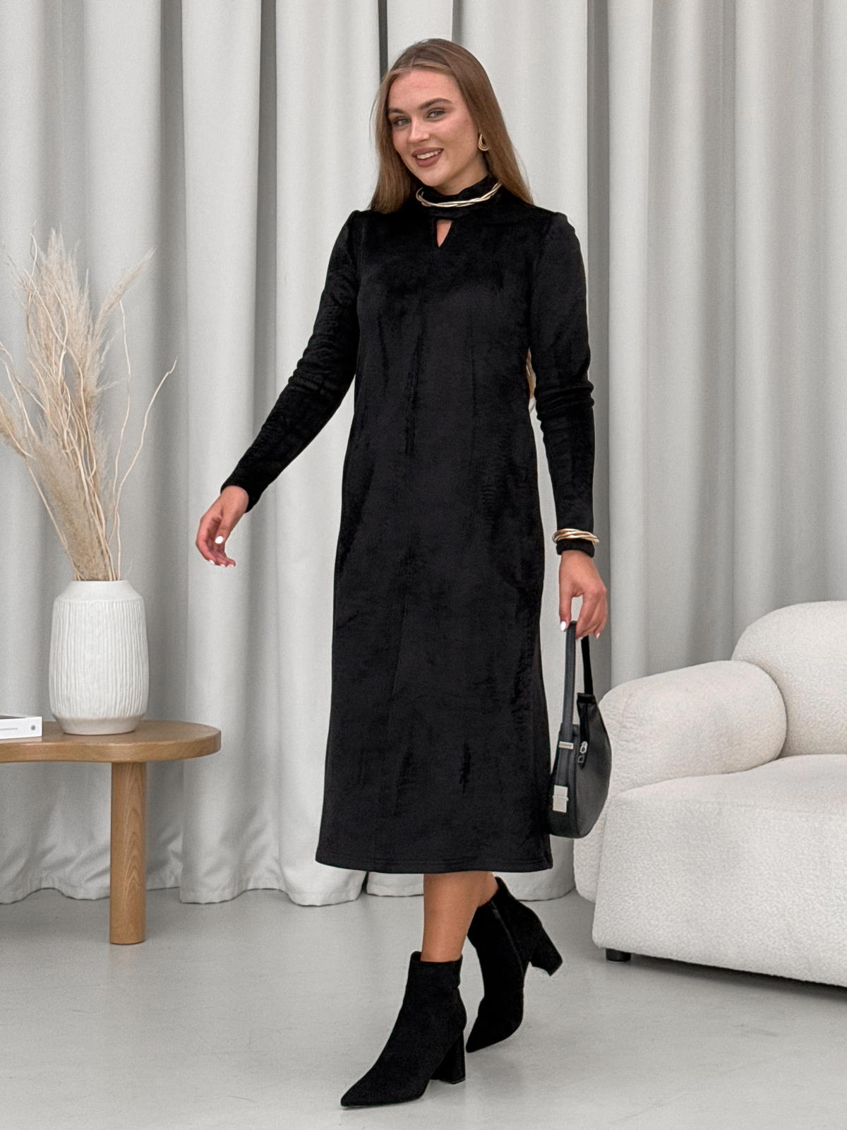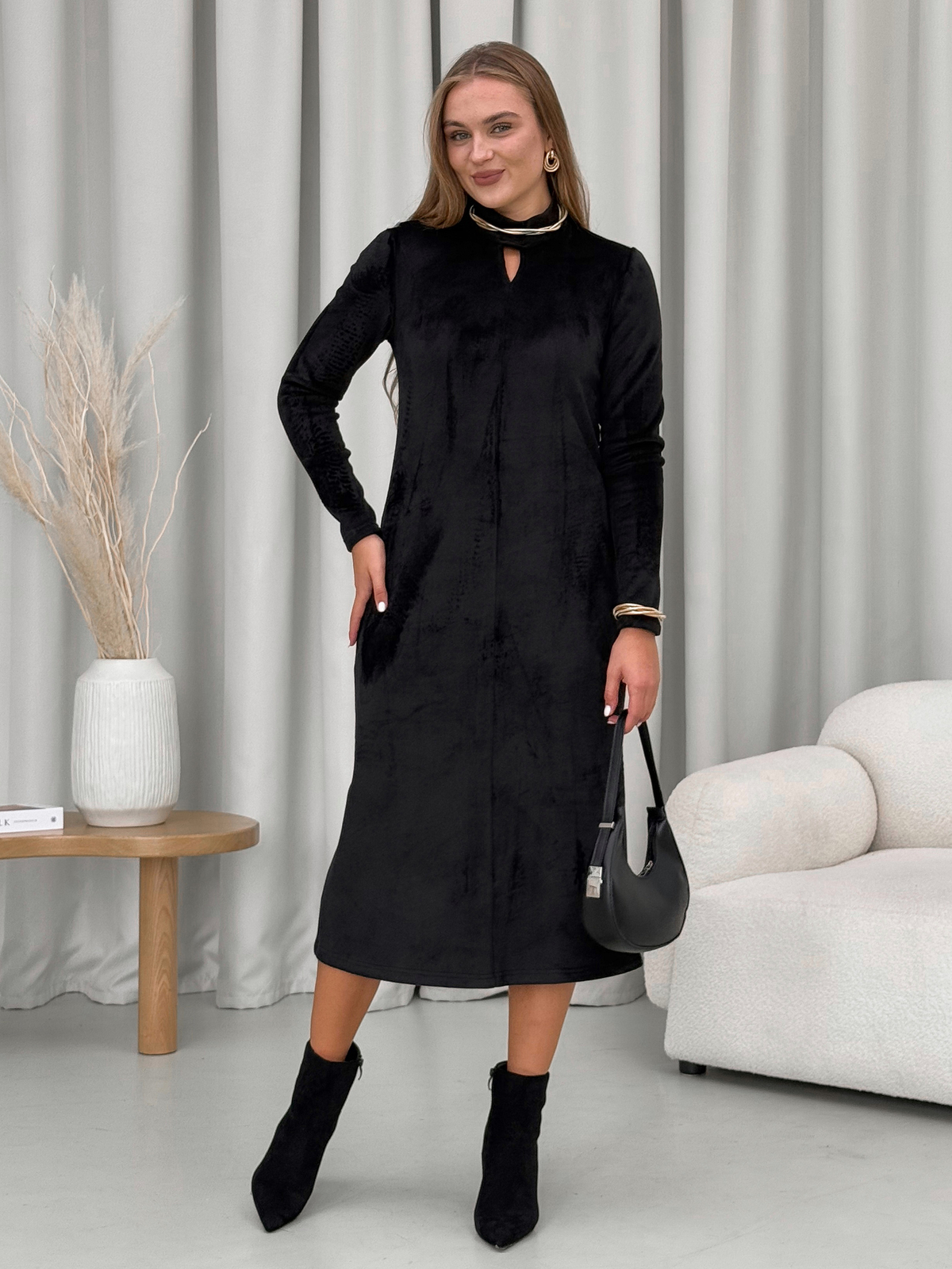 Довга тепла сукня Merlini - це ідеальний вибір для жінок, які цінують комфорт і стиль у будь-яку пору року. Виготовлена з високоякісного турецького велюру на флісі, ця сукня забезпечить вам тепло та затишок у холодні осінні та зимові дні.