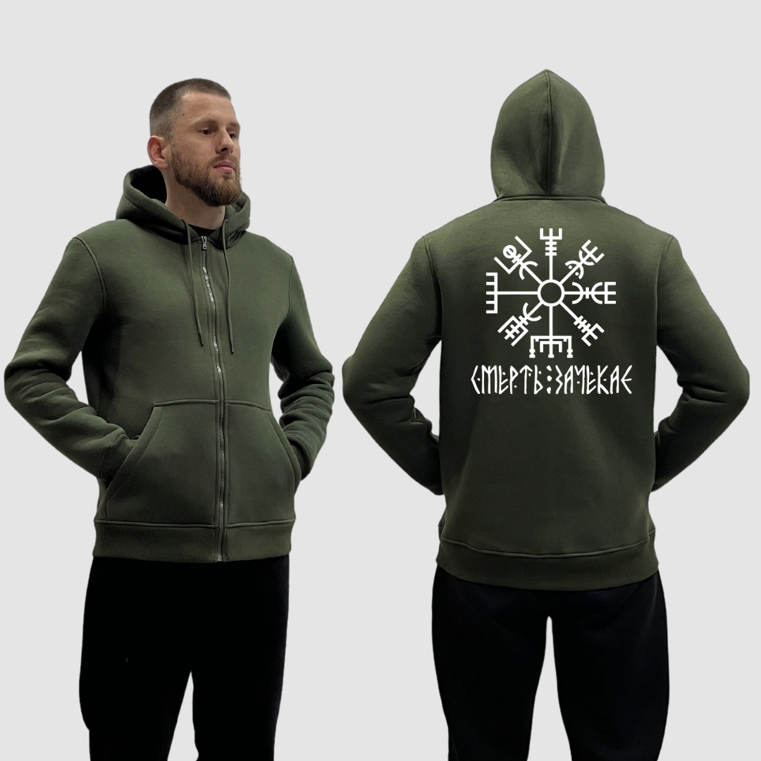 Замовте свій зіп-худі на флісі з принтом "Смерть зачекає" вже сьогодні, щоб бути в тренді цієї осені та зими! Обмежена кількість товарів на складі, тому дійте швидко!